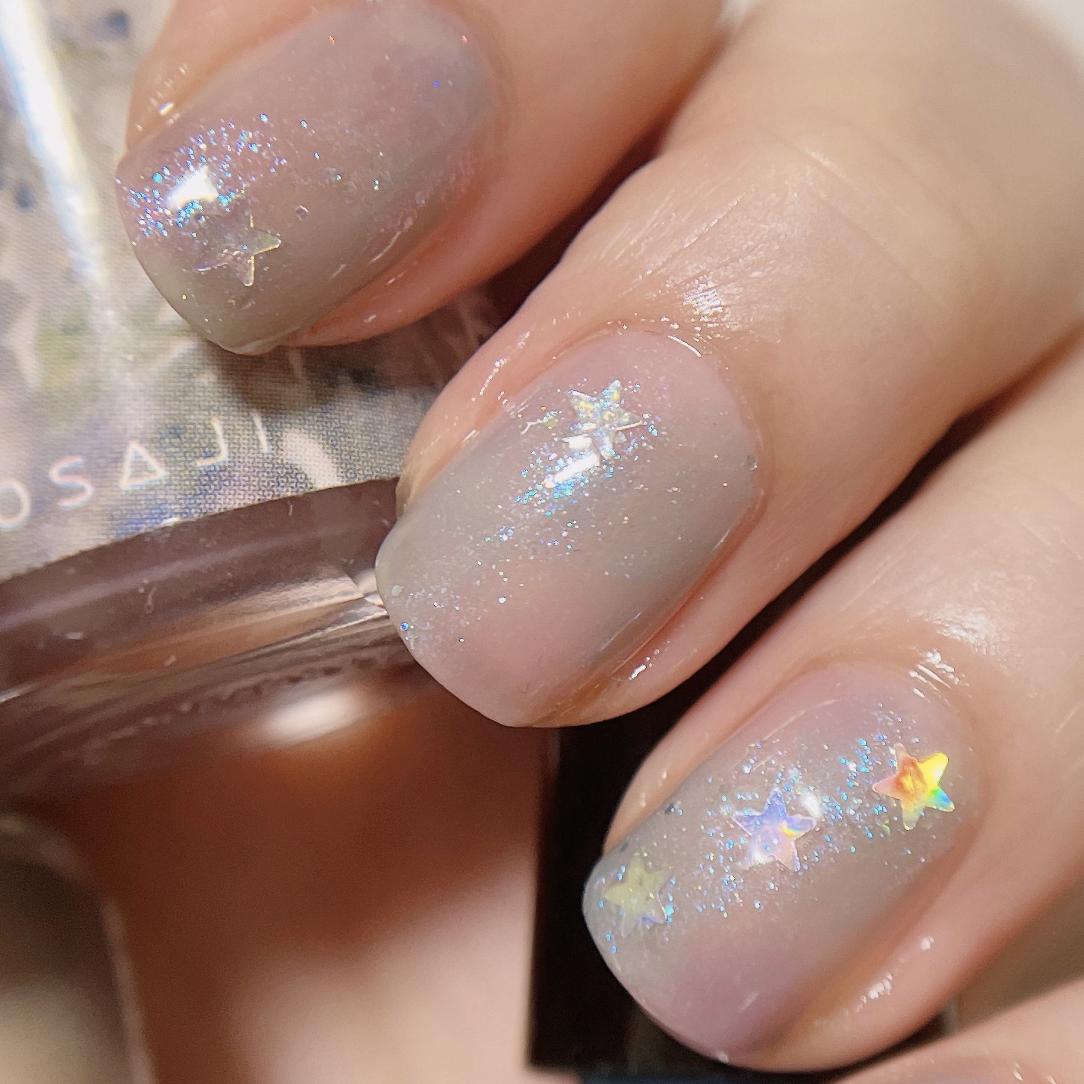 透け感があるのでかなり透明感がでるのが嬉しい💕 ラメも結構入ってるので、チラチラ輝いてテンションあがります😍 透け発色でムラになりにくく、とにかくオサジのネイルは色と質感の合わせが可愛すぎて癖になる!!! ついつい集めちゃうお気に入りシリーズのネイルです🥰