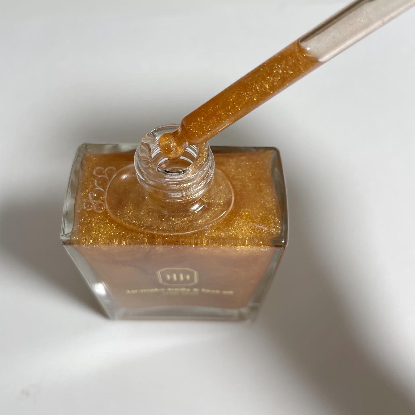 - 全身どこでもツヤめかせるマルチオイル。5種類の植物性オイル(マカデミア種子油、アーモンド油、オリーブ果実油、ヒマワリ種子油、ホホバ種子油)が乾燥してゆらいだ肌にたっぷりとうるおいを補給し、やわらかなみずみずしい肌に。軽く、さらっとしたテクスチャーで、心地よい使用感。さらっとしているのに、しっとりなめらかに。