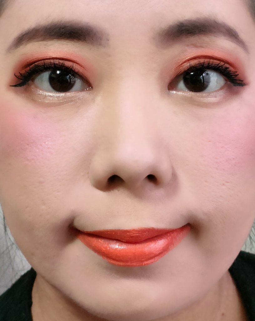 アイシャドウパレットは、UR GLAM アイシャドウパレットを、使用しました。 リップは、M・A・C リップスティック ピーチストックを、唇全体にまんべんなく塗ります。