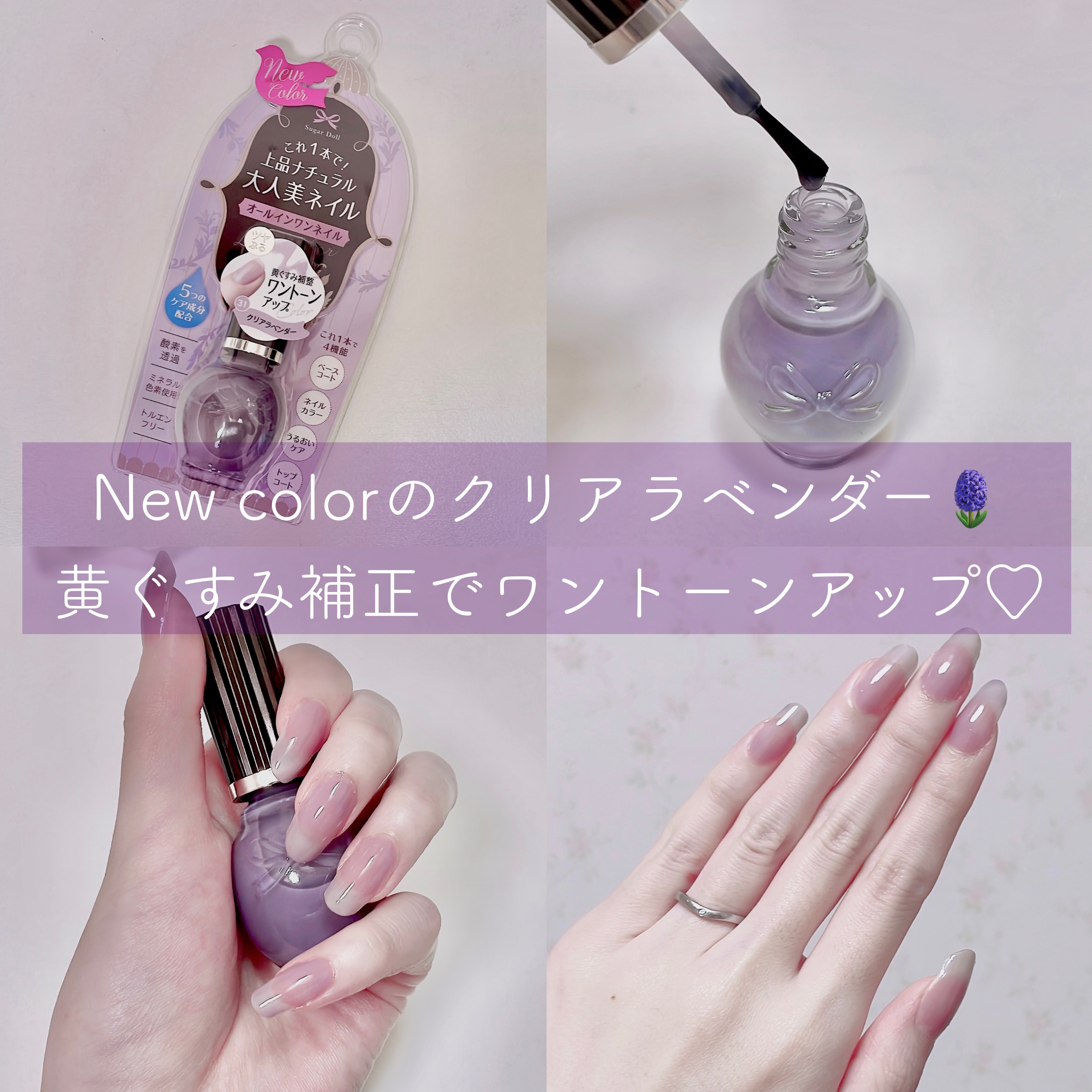 - ※パッケージ順次リニューアル。尚、リニューアルにかかる返品交換等は承っておりません。 これ1本で上品ナチュラルなツメ美人に! ひと塗りで、気になる縦ジワ・凹凸もつるんと補整し、ジェルのようなぷるツヤ仕上げ。 カンタンに、お手入れ感のある爪先がかないます。 シーンを選ばず使いやすいベーシックなカラーライナップ。 ・4つの機能が1つになったオールインワンネイル ベースコート・・・凹凸縦ジワ補整 ネイルカラー・・・ミネラル色素使用 ほんのり血色感UP うるおいケア・・・爪にもうるおい トップコート・・・上品なぷるツヤ仕上げ