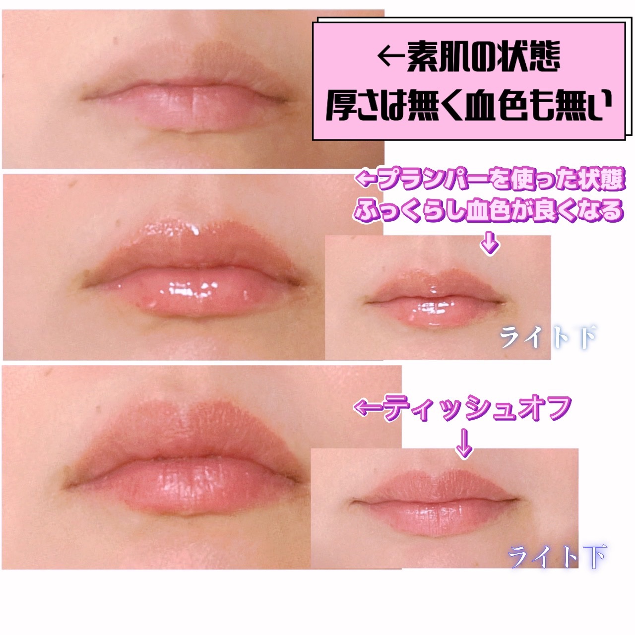 塗った瞬間は「なんだ全然痛く…」次の瞬間!ジワジワジワ〜!っと痛みが襲ってくる! 唇の血色はぐんぐん良くなり縦じわが目立たなくなる一方でいつ痛みが引くのか不安になってくる。 血色が完璧に良くなりリップいらずな唇に! プランパーよりオイル感あるテクスチャでサラッと塗れます。スッとした感じでピリピリ感もあまり無いかな? しっかり激痛、うるつや、ふっくら。 色は薄めでシアーなベージュピンクに沢山のシルバーラメが入ってます!普通に塗ったらギラッギラになる! こちらはオレンジベージュ、ブラウンベージュ的な色がしっかりあります。その中にゴールドの細かいラメがたっぷり。 プランプ効果、ピリピリ感は少なめでした。 リップグロスはラメのたっぷり感も良く使い勝手は良さそう。品質レベル的には値段相応かな?って感じでした。