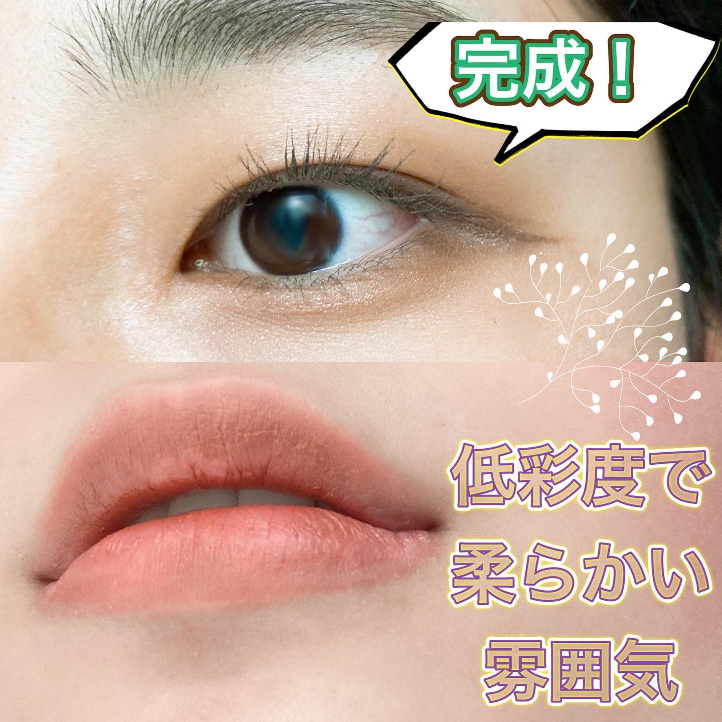 塗ってみると、とろけるようなテクスチャーで表面にちゅるんとしたツヤが出ました! 透け感があるため暗い色なのに明るい雰囲気になりました! ティッシュオフすると色付きリップなので色は落ちますが、ツヤが少し残っているので汚い感じにはならなかったです。 細かいラメが入っているのも可愛いです✨