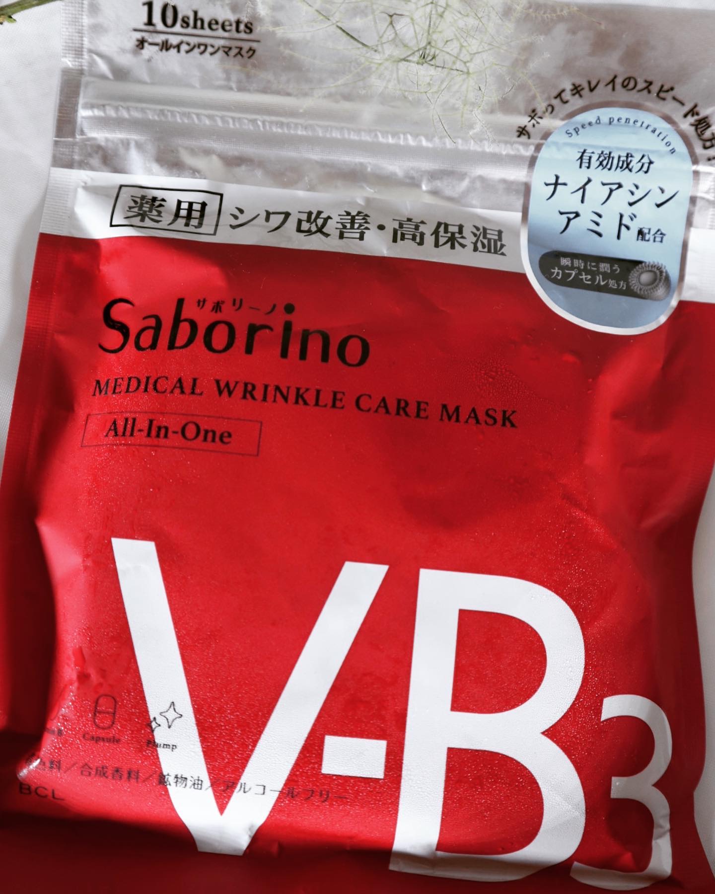 - サボリーノからシワ改善の薬用オールインワンマスク! サボってキレイのスピード処方! 【シワ改善・高保湿処方】有効成分:ナイアシンアミド シワと乾燥を防ぎながら ひたっと瞬時に潤う薬用処方のシートマスク 瞬時に潤うナノカプセル処方でスッと浸透(*) シートを貼った瞬間にひたっと潤いを感じる肌へ。 着色料/合成香料/鉱物油/アルコールフリー 医薬部外品 *角層まで 販売名 薬用 ひたっとマスク WR