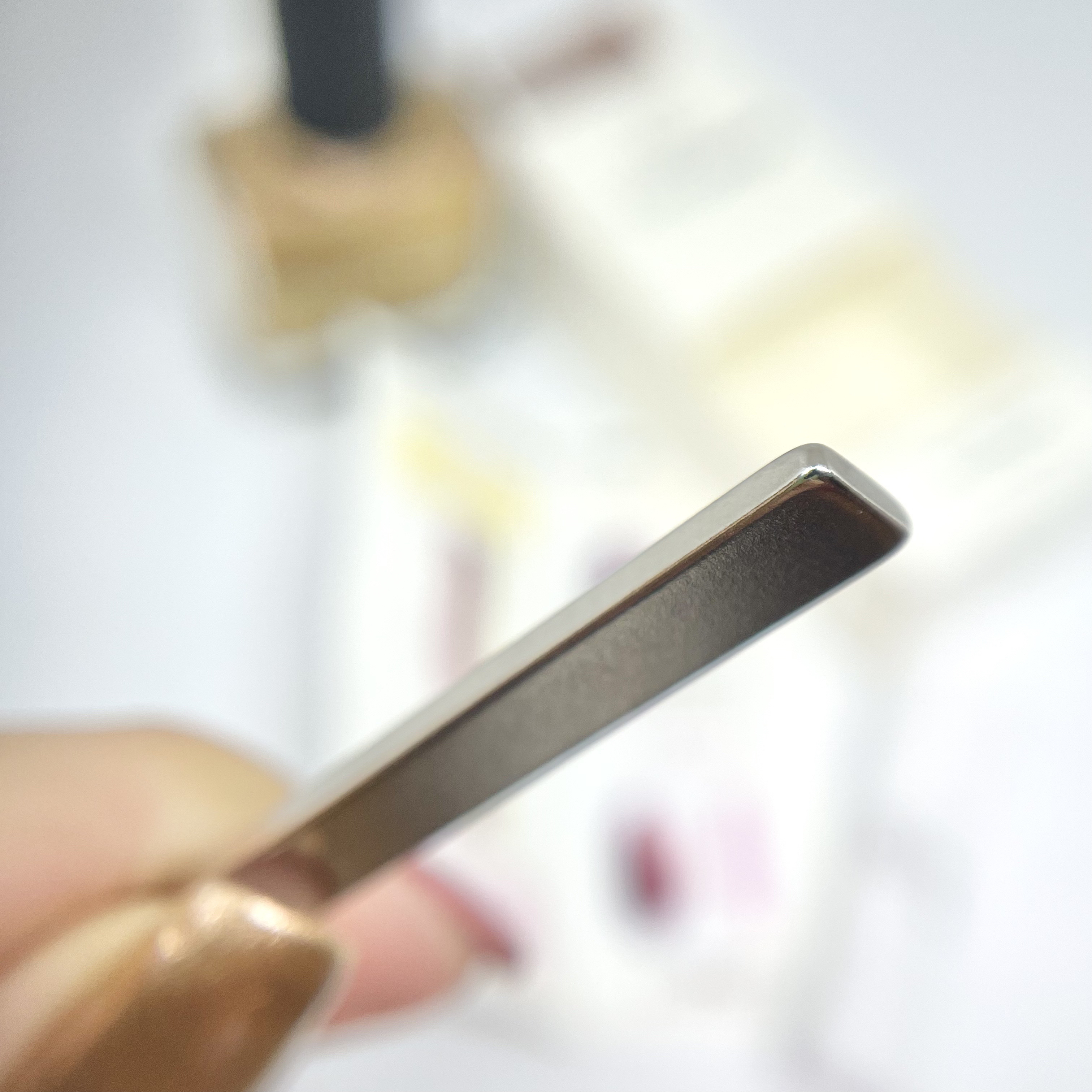 刷毛はスリムで束感があります。 とても速乾です✨ 色によって1度塗りだと、シアーだったりムラになりやすいものがあるので、好みで1〜2度塗りするといいかも🥰 09ユニコーンパール 11ロゼスパークル