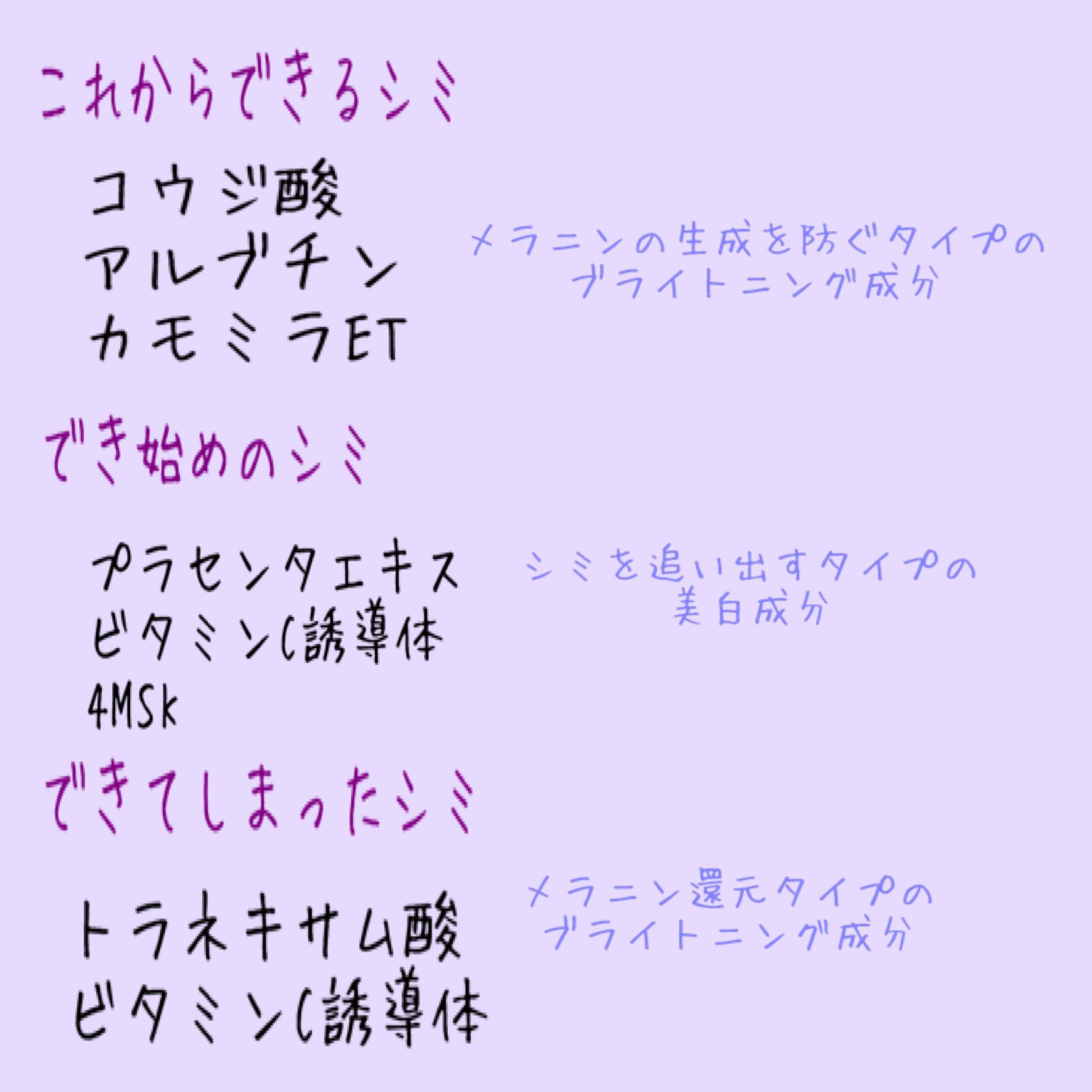 - <本体 40ml> 有効成分 コウジ酸 その他の成分 精製水、ジプロピレングリコール、1,3-ブチレングリコール、エタノール、濃グリセリン、トリイソステアリン酸トリメチロールプロパン、N-アセチル-L-ヒドロキシプロリン、d-δ-トコフェロール、アセチル化ヒアルロン酸ナトリウム、カリンエキス、グリコシルトレハロース・水添デンプン分解物混合溶液、サンショウエキス、トランス-レスベラトロール、フィトグリコーゲン、ボタンエキス、メマツヨイグサ抽出液、ユリエキス、桑黄抽出液、天然ビタミンE、N-ステアロイル-L-グルタミン酸二ナトリウム、エデト酸二ナトリウム、オレイン酸エチル、キサンタンガム、クエン酸、クエン酸ナトリウム、ジェランガム、セトステアリルアルコール、ヒドロキシメトキシベンゾフェノンスルホン酸ナトリウム、ポリアクリル酸アミド、ポリオキシエチレンステアリルエーテルリン酸、ポリオキシエチレンセチルエーテルリン酸、ポリオキシエチレンラウリルエーテル(7E.O.)、ポリオキシエチレン硬化ヒマシ油、モノオレイン酸ポリオキシエチレンソルビタン(20E.O.)、軽質流動イソパラフィン、親油型モノステアリン酸グリセリル、水酸化アルミニウム、無水エタノール、エチルパラベン、メチルパラベン、香料、カラメル、酸化チタン <付けかえ用 40ml> 有効成分 コウジ酸 その他の成分 精製水、ジプロピレングリコール、1,3-ブチレングリコール、エタノール、濃グリセリン、トリイソステアリン酸トリメチロールプロパン、N-アセチル-L-ヒドロキシプロリン、d-δ-トコフェロール、アセチル化ヒアルロン酸ナトリウム、カリンエキス、グリコシルトレハロース・水添デンプン分解物混合溶液、サンショウエキス、トランス-レスベラトロール、フィトグリコーゲン、ボタンエキス、メマツヨイグサ抽出液、ユリエキス、桑黄抽出液、天然ビタミンE、N-ステアロイル-L-グルタミン酸二ナトリウム、エデト酸二ナトリウム、オレイン酸エチル、キサンタンガム、クエン酸、クエン酸ナトリウム、ジェランガム、セトステアリルアルコール、ヒドロキシメトキシベンゾフェノンスルホン酸ナトリウム、ポリアクリル酸アミド、ポリオキシエチレンステアリルエーテルリン酸、ポリオキシエチレンセチルエーテルリン酸、ポリオキシエチレンラウリルエーテル(7E.O.)、ポリオキシエチレン硬化ヒマシ油、モノオレイン酸ポリオキシエチレンソルビタン(20E.O.)、軽質流動イソパラフィン、親油型モノステアリン酸グリセリル、水酸化アルミニウム、無水エタノール、エチルパラベン、メチルパラベン、香料、カラメル、酸化チタン <ラージサイズ 付けかえ用 65ml> 有効成分 コウジ酸 その他の成分 精製水、ジプロピレングリコール、1,3-ブチレングリコール、エタノール、濃グリセリン、トリイソステアリン酸トリメチロールプロパン、N-アセチル-L-ヒドロキシプロリン、d-δ-トコフェロール、アセチル化ヒアルロン酸ナトリウム、カリンエキス、グリコシルトレハロース・水添デンプン分解物混合溶液、サンショウエキス、トランス-レスベラトロール、フィトグリコーゲン、ボタンエキス、メマツヨイグサ抽出液、ユリエキス、桑黄抽出液、天然ビタミンE、N-ステアロイル-L-グルタミン酸二ナトリウム、エデト酸二ナトリウム、オレイン酸エチル、キサンタンガム、クエン酸、クエン酸ナトリウム、ジェランガム、セトステアリルアルコール、ヒドロキシメトキシベンゾフェノンスルホン酸ナトリウム、ポリアクリル酸アミド、ポリオキシエチレンステアリルエーテルリン酸、ポリオキシエチレンセチルエーテルリン酸、ポリオキシエチレンラウリルエーテル(7E.O.)、ポリオキシエチレン硬化ヒマシ油、モノオレイン酸ポリオキシエチレンソルビタン(20E.O.)、軽質流動イソパラフィン、親油型モノステアリン酸グリセリル、水酸化アルミニウム、無水エタノール、エチルパラベン、メチルパラベン、香料、カラメル、酸化チタン <ミニサイズ 10ml> 有効成分 コウジ酸 その他の成分 精製水、ジプロピレングリコール、1,3-ブチレングリコール、エタノール、濃グリセリン、トリイソステアリン酸トリメチロールプロパン、N-アセチル-L-ヒドロキシプロリン、d-δ-トコフェロール、アセチル化ヒアルロン酸ナトリウム、カリンエキス、グリコシルトレハロース・水添デンプン分解物混合溶液、サンショウエキス、トランス-レスベラトロール、フィトグリコーゲン、ボタンエキス、メマツヨイグサ抽出液、ユリエキス、桑黄抽出液、天然ビタミンE、N-ステアロイル-L-グルタミン酸二ナトリウム、エデト酸二ナトリウム、オレイン酸エチル、キサンタンガム、クエン酸、クエン酸ナトリウム、ジェランガム、セトステアリルアルコール、ヒドロキシメトキシベンゾフェノンスルホン酸ナトリウム、ポリアクリル酸アミド、ポリオキシエチレンステアリルエーテルリン酸、ポリオキシエチレンセチルエーテルリン酸、ポリオキシエチレン