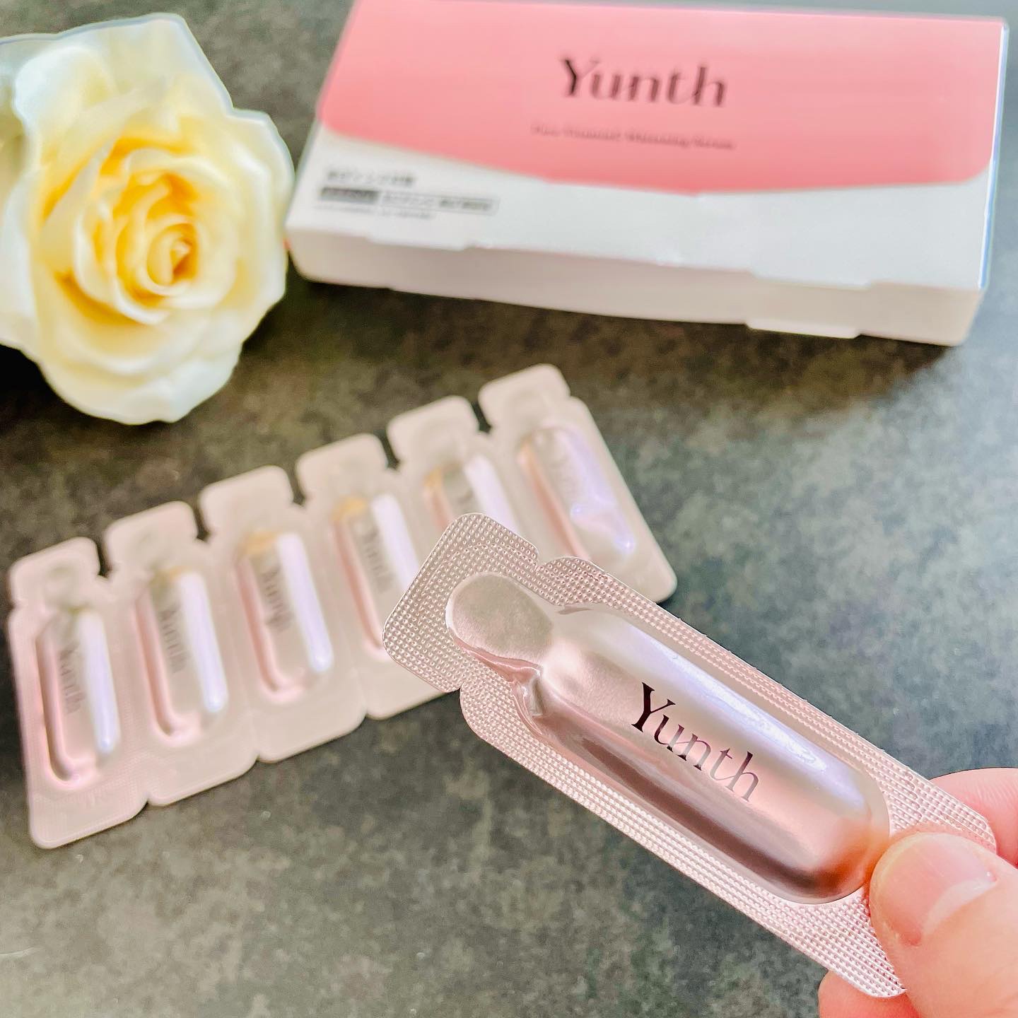 Yunth 生VC美白美容液オイルっぽいテクスチャーで少しベタつきが気になる方もいると思いますが、この寒い時期にはそんなに気になりませんでした!!個包装なので酸化が気にならずに使用でき、持ち運びにも便利です✨✨【商品特徴】生ビタミンC(アスコ...