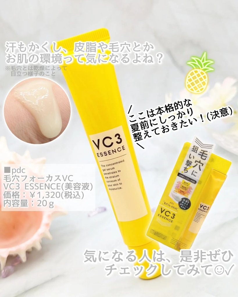 pdc毛穴フォーカスVCVC3エッセンス20g**毛穴ケアを考えて作られている鼻や頬周りの気になる毛穴に塗るタイプのジェル美容液気になりすぎているので早速使いました✨テクスチャーはみずみずしいジェルで伸びがよくお肌に馴染みもいい手に取ってみる...