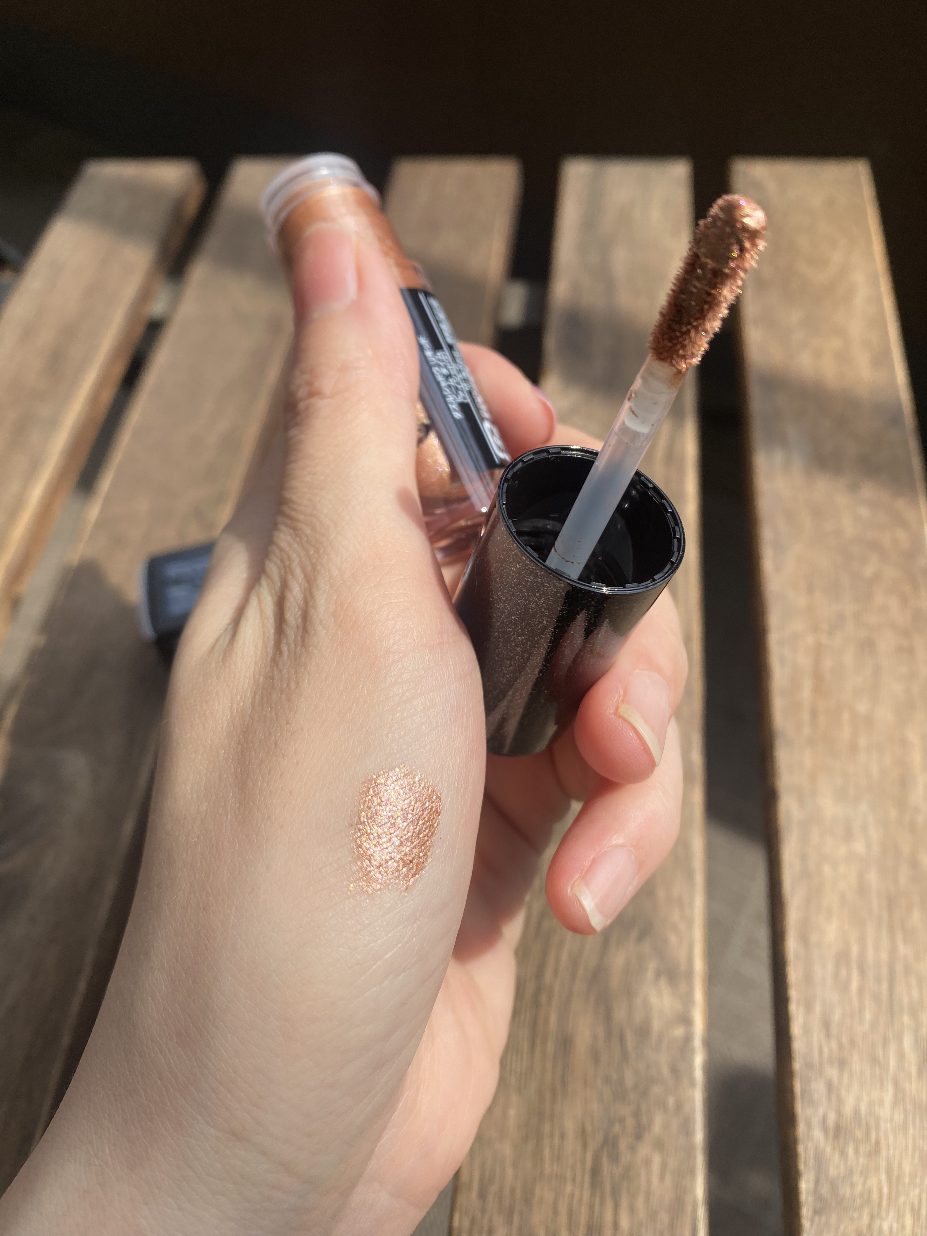 鮮やかな発色で、シルクのように軽くスムーズなテクスチャー。グリッターのような大胆な輝きやパールのような繊細な艶めきなど、まばゆい輝きを放つリキッドアイシャドウ。 ロングウェアリング、ひとぬりで、ぴたっと肌に密着、ヨレにくい。敏感な目元も考えてつくられています。 私はフラッシュ アンド ダッシュを購入したよ。ライトシャンパンゴールド。肌なじみがよいよ。