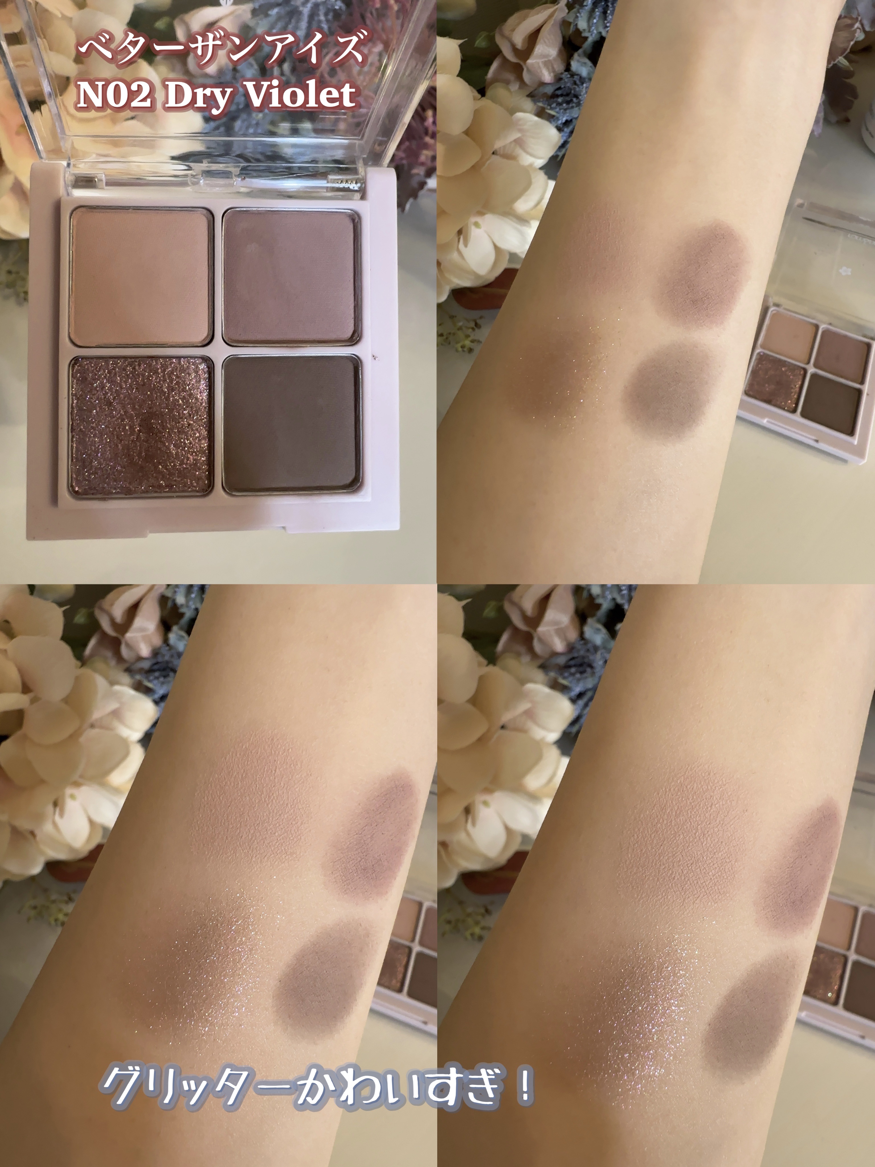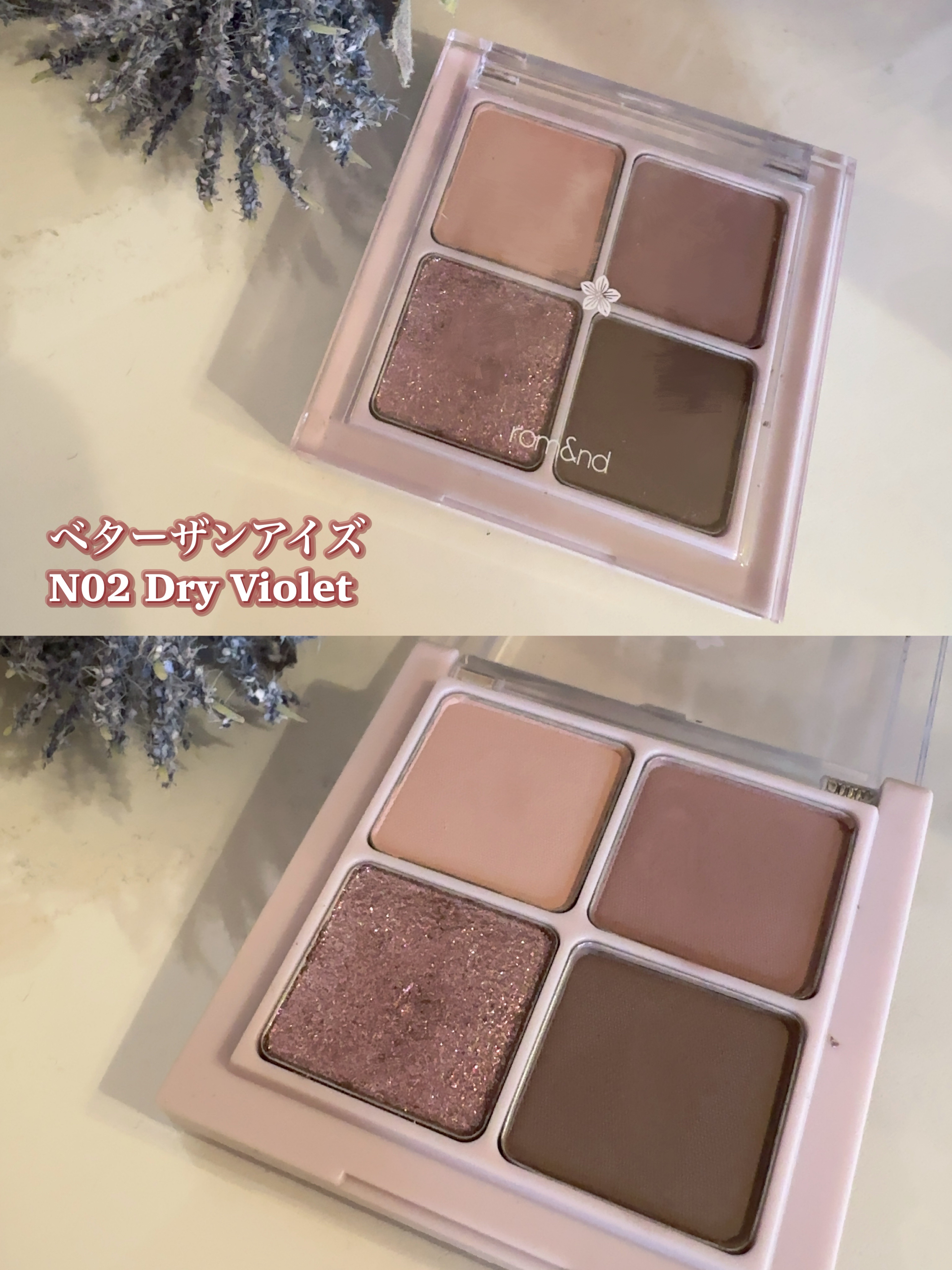 【目元に咲くすみれ🌼ロムアンドのパープルアイシャドウ】ロムアンドのアイシャドウといえば!な4色パレッドシリーズの儚げなのに印象に強く残るパープルカラーが美しいドライバイオレット!くすみパープルが良すぎる…♡rom&nd(ロムアンド)Bette...