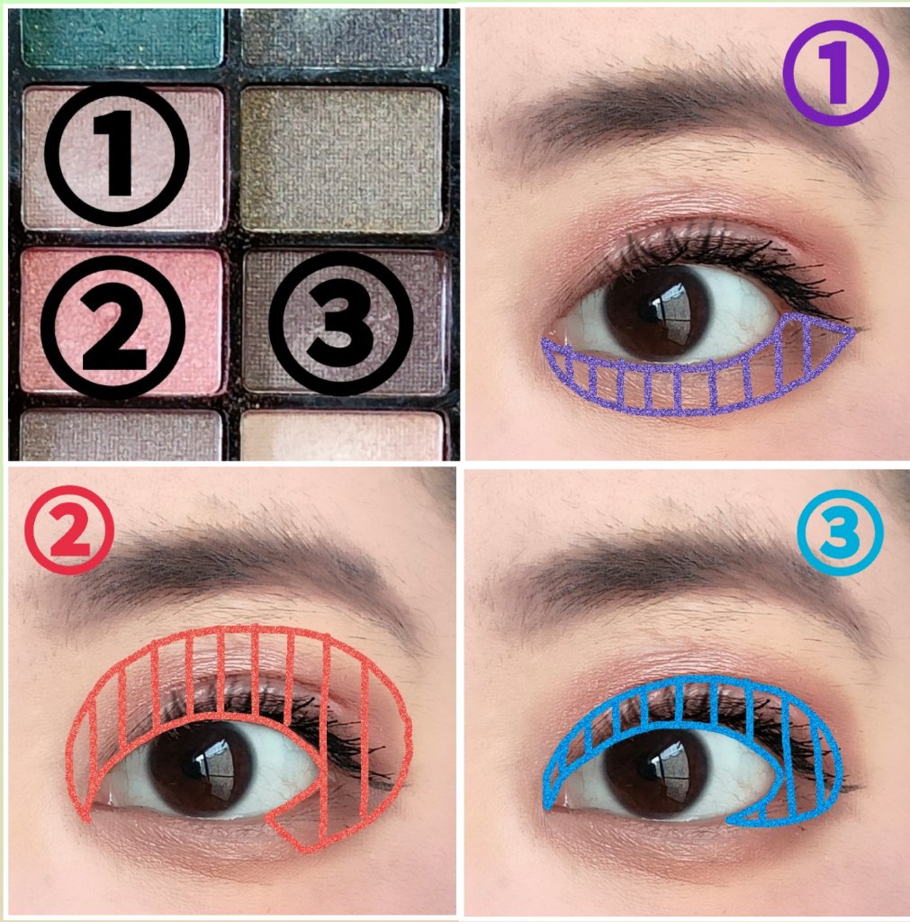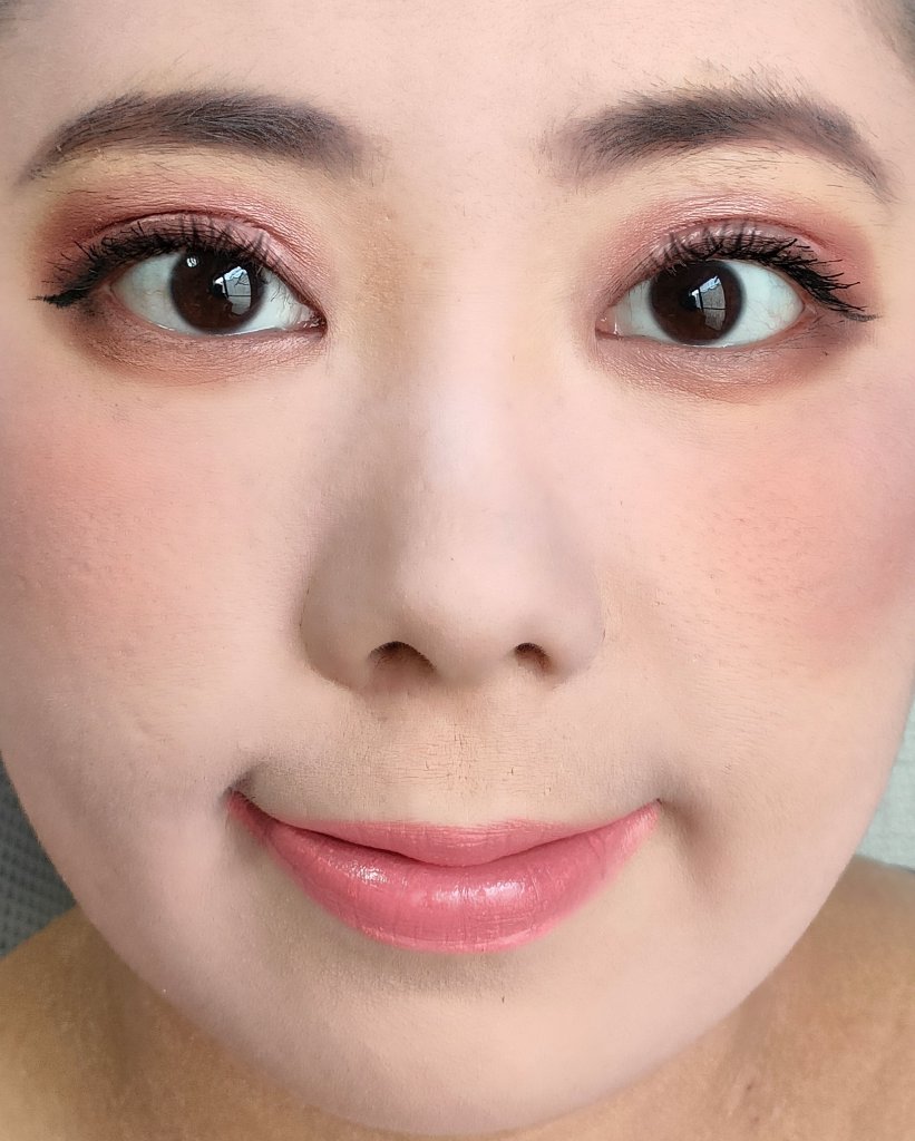 アイシャドウパレットは、URGLAM UR GLAMBLOOMING EYE COLOR PALETTE 02を、使用しました。 マスカラは、MAYBELLINE NEW YORK コロッサルボリュームエクスプレスを、まつ毛全体にまんべんなく塗ります。 リップは、wet 'n' wild MegaLast Lip Colorを、唇全体にまんべんなく塗ります。