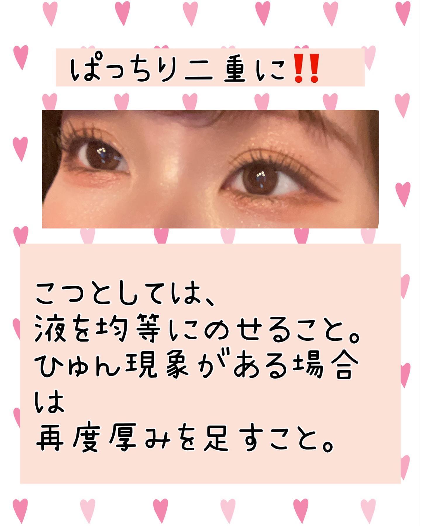 - 2020年6月3日 膜が強くなってリニューアル発売! 塗って乾かすだけのふたえ整形フィルム。見えない膜がふたえをつくり、自然なふたえが完成します。非接着タイプでまぶたを貼り付けないので、目を閉じても自然な仕上がり。まばたきしてもつっぱりません。水・汗に強いウォータプルーフでクッキリふたえをキープ。うるおい成分のヒアルロン酸・コラーゲン配合。