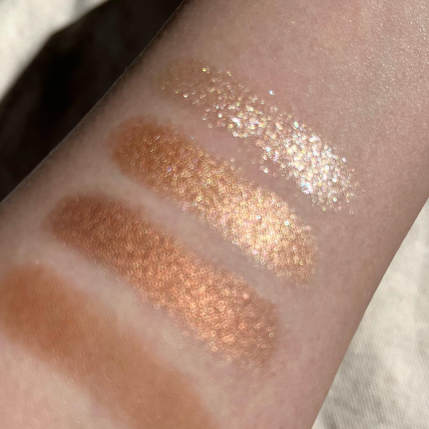 プライマーを使って、密度の高い感じのブラシで 左下ローズを置くように塗る。 ぼかすのは境目だけにして、しっかり色を出す。 右下のダークブラウンと思っていた濃い色は メイクしてみたら結構紫っぽく出たんですが これがまぁくすみ感が強くて…w くすみは何より苦手だよ😂😂 右上のラメはぺかっと光るのがとっても良い!!🤩 割とシンプルなメイクになるな~と思うけど しっかり色出せたので無事使っていけそうです💃🏼💓