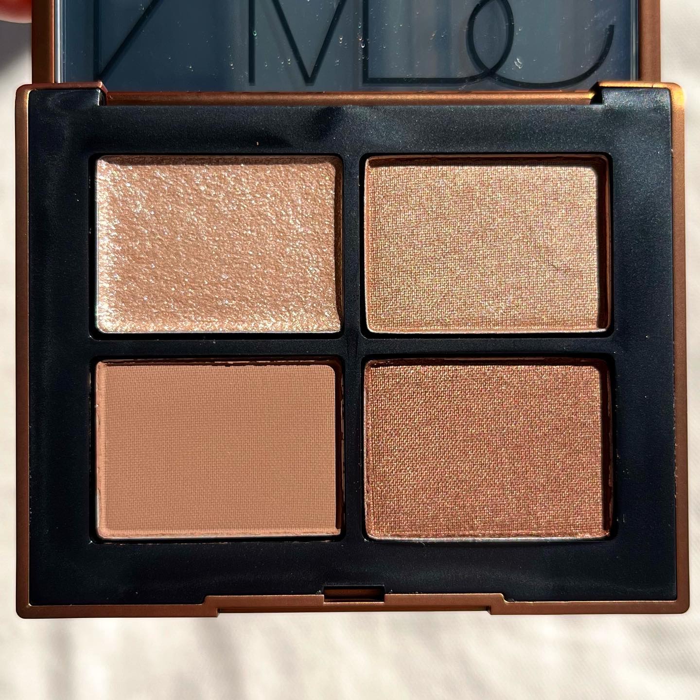 NARSクワッドアイシャドー03140LAGUNASUNSETこちらは2023年発売の商品です。限定品の為、店頭では見られないので備忘録として投稿します🥲左上の色が一番ギラギラ。まぶたにのせるとベージュぽく発色し派手な印象に。他の色も強めの発...