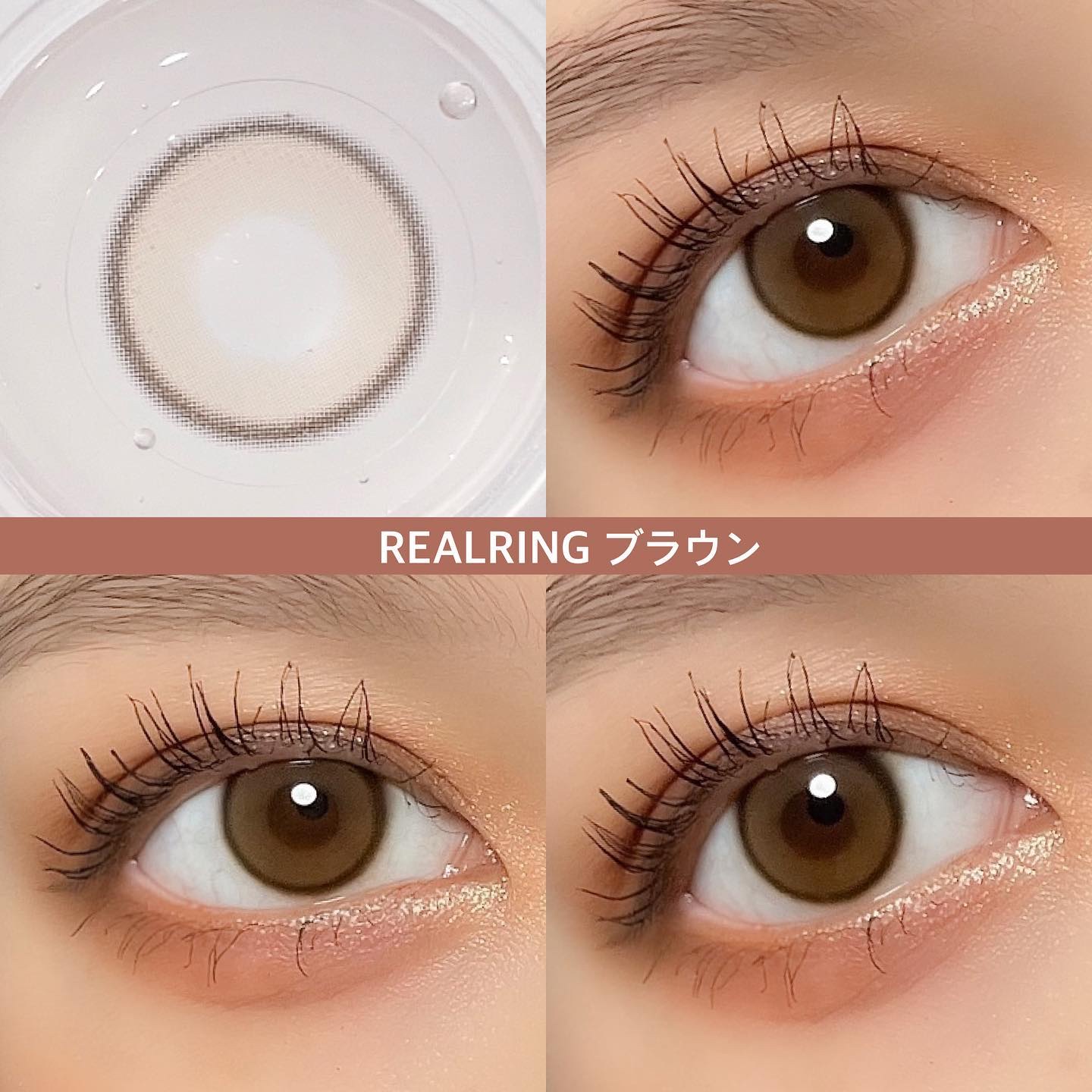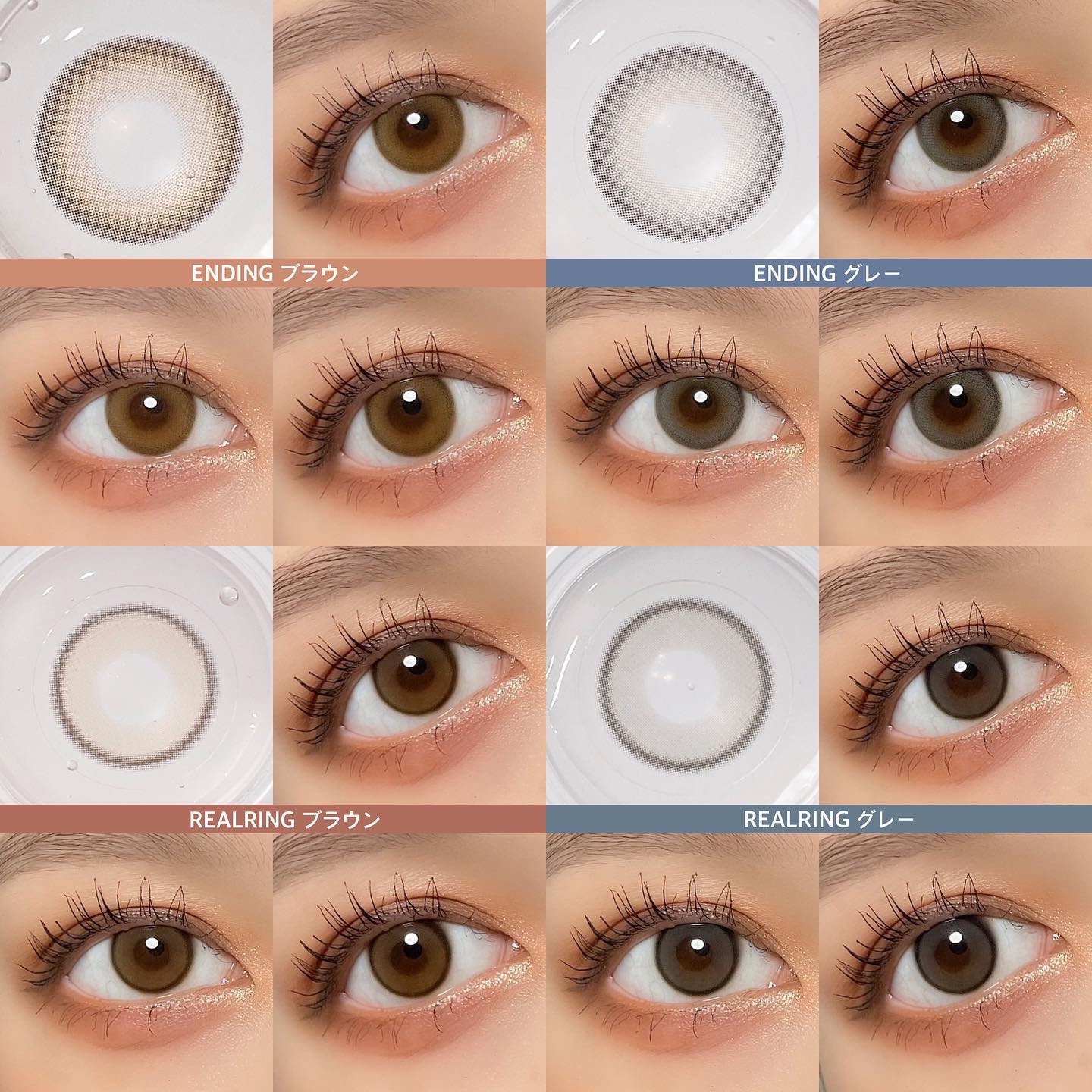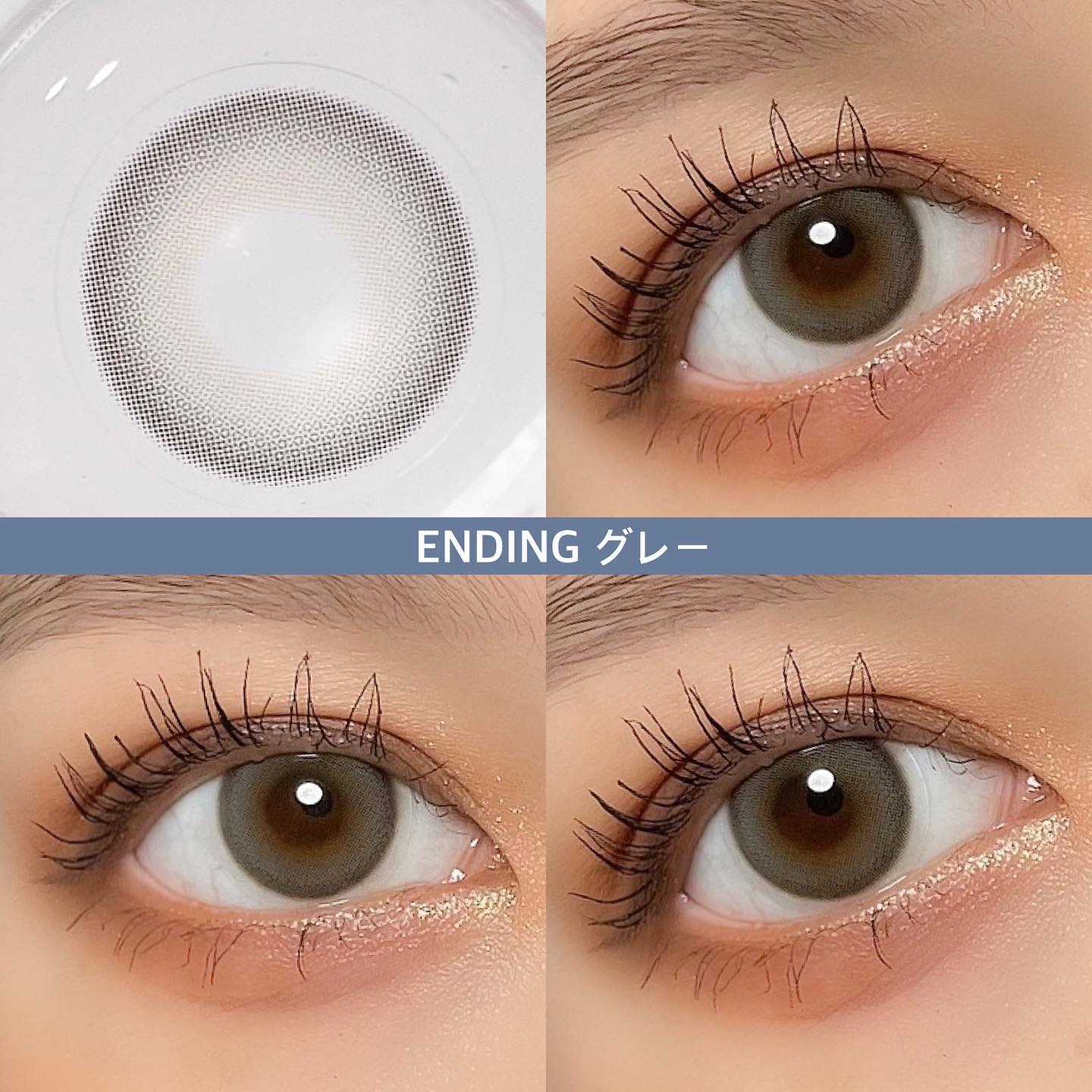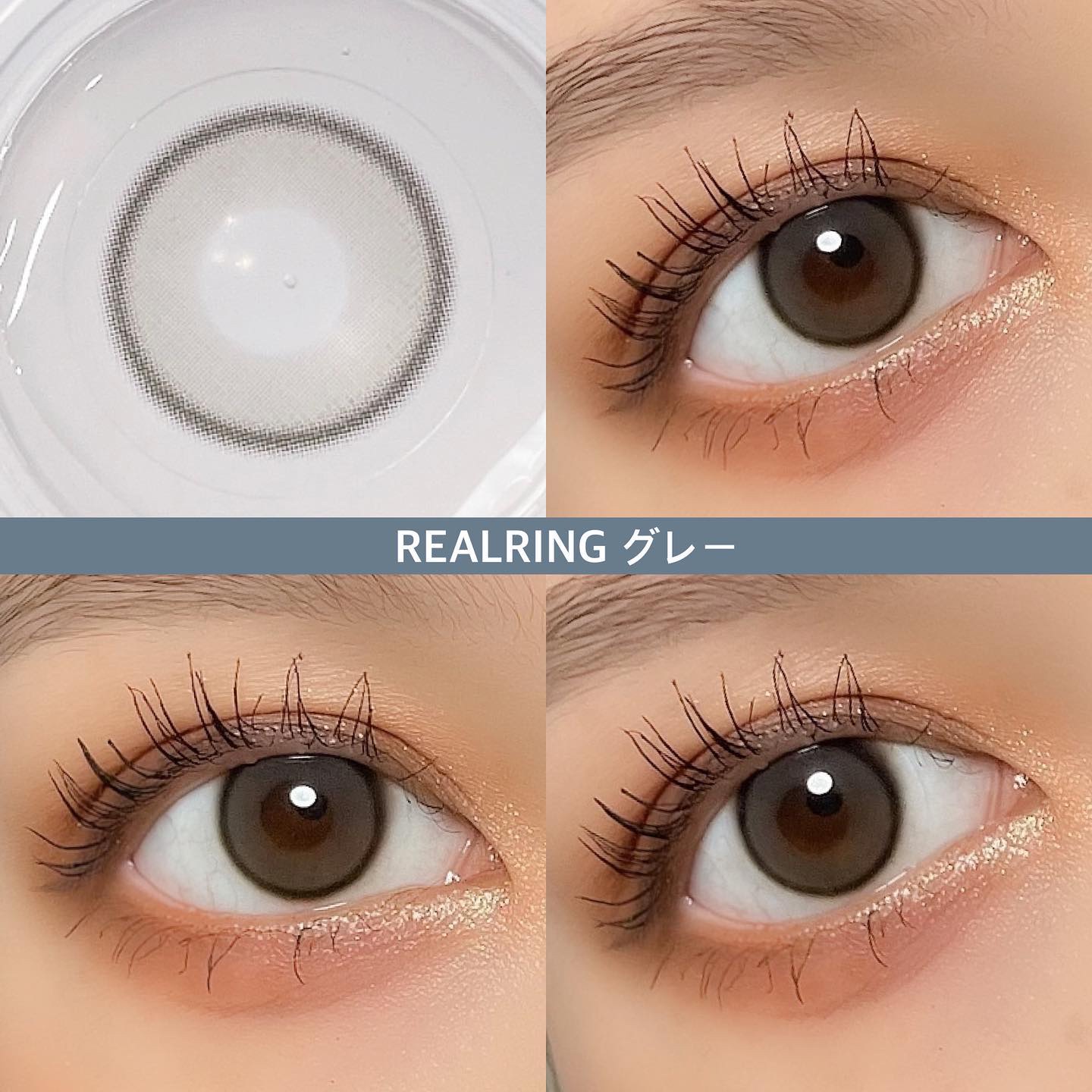 明るめのキャラメルブラウンカラー🍪🤎 透明感もあるので、派手にならず自然にトーンアップした仕上がりになりました🫶🏻ˊ˗ くすみのある透明感グレー発色🩶✨ フチはチャコール系のカラーで、ナチュラルに瞳の印象をアップしてくれます◎ 老若男女問わず使いやすいカラコンです💪🏻