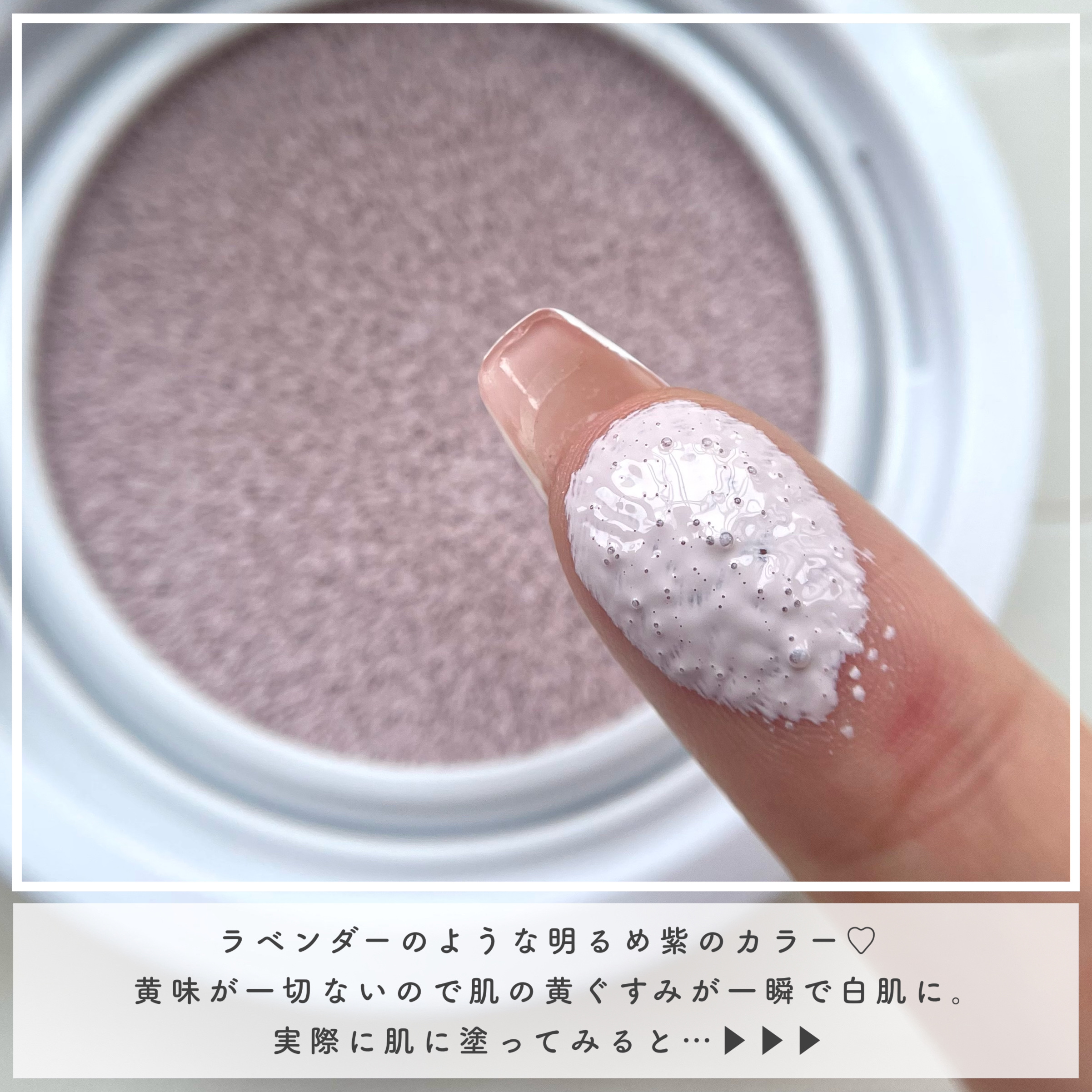 透明な紫色を肌に薄く伸ばすことで黄色いスキントーンが華やかに補完する くすみを飛ばして自然にトーンアップしつつ毛穴も綺麗にカバーしてくれます! 伸びも肌馴染みも良くて崩れにくくなるので、化粧下地として使ってます!