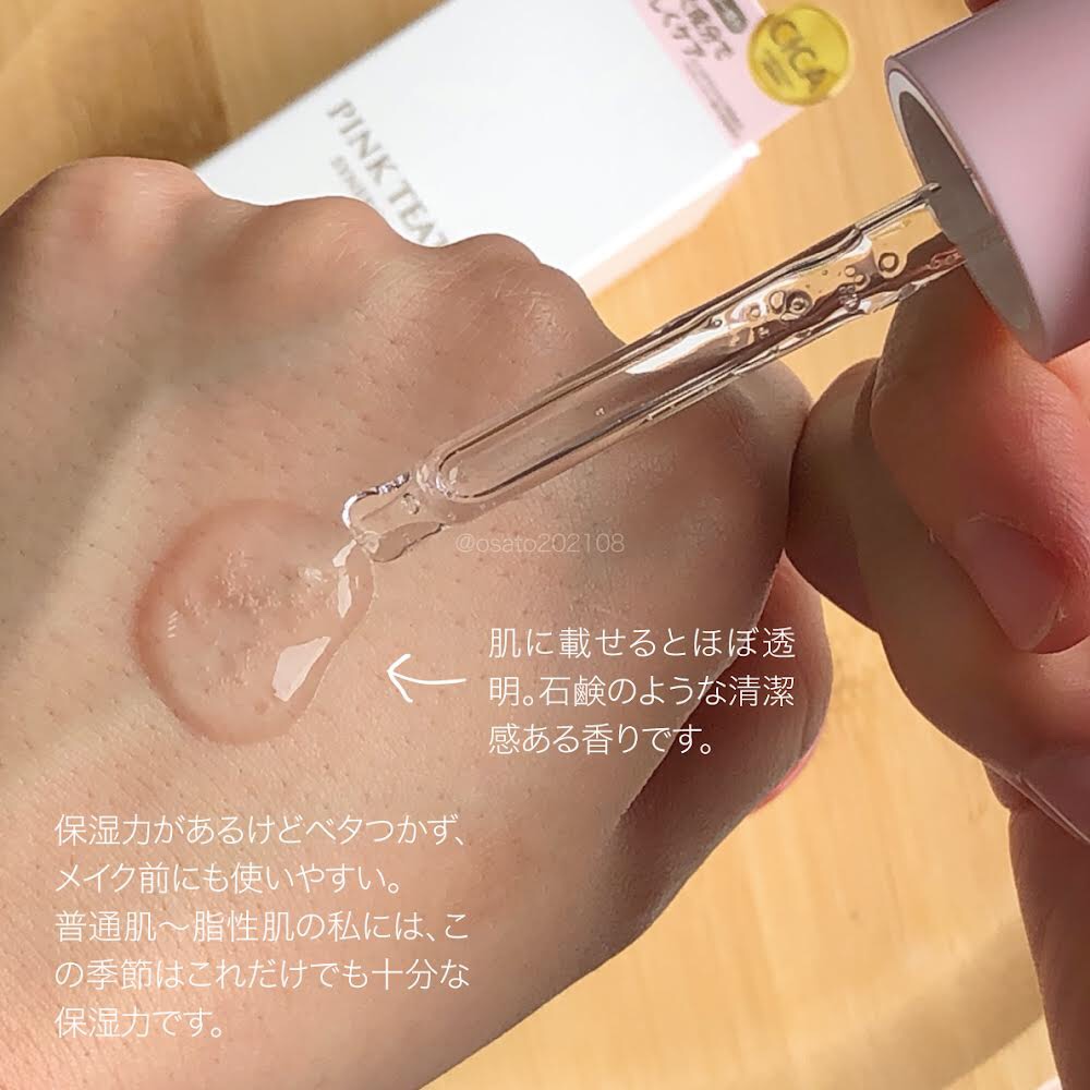 可愛いピンク色のAPLIN第人気のセラム♡ このピンク色は自然成分ビタミンB12によるもので、着色料不使用⚐ ˒˒ ●保湿成分のティーツリーやツボクサ(CICA)エキス配合 →肌荒れの鎮静効果 とろっとした濃厚なテクスチャーですが、スーッと伸びてしっとりもっちりとしたお肌に♡