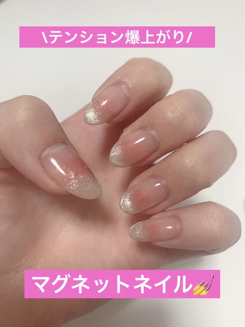 ダイソーでネイルチップを購入しました! 12枚全て違うサイズになるので両手分二つ購入✨ キラキラと光マグネットが可愛い🩷 これで100円はコスパ良すぎです✨ ネイルパーツをつけてアレンジしてもかわいい💕