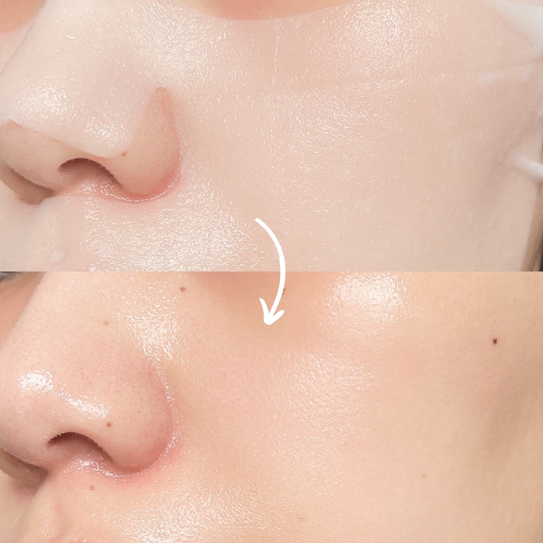 発酵成分と肌ひきしめ成分のW配合 ナンバーズイン3番セラムの濃縮された発酵成分を1枚に入れ込み集中ケア。 つけた時はなんの刺激もなく、5分位するとじんわり温かい少しヒリヒリっとするけど痛みは感じない程度でした❤️🔥👍🏻 確かに引き締め感は感じるけど、ピーリング後のようなツルツル感までは私は感じなかったです。
