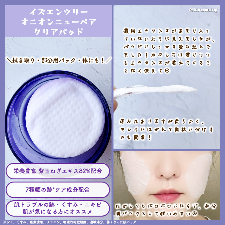 isntreeさまからいただきました。isntreeオニオンニューペアクリアパッド✂🟣韓国の務安産、紫玉ねぎエキス82%▶︎敏感になった肌を鎮静。肌のくすみや跡をケア。🟡ナイアシンアミド🟡トラネキサム酸🟡ビタミンC誘導体▶︎メラニン色素沈着に...