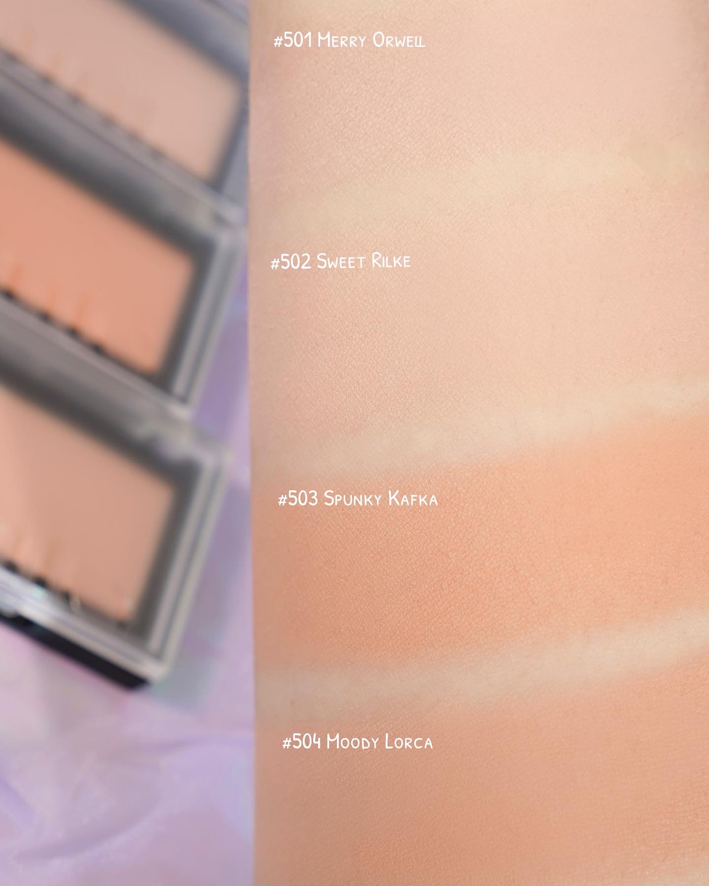 - <501 メアリーオーウェル> タルク、マイカ (CI 77019)、結晶セルロース、シリカ、ステアロイルオキシステアリン酸オクチルドデシル、フェニルトリメチコン、ミリスチン酸Mg、マカデミア種子油、メチルプロパンジオール、ジメチコン、ステアリン酸Mg、プロパンジオール、ステアリン酸ジメチコノール、水添レシチン、トリエトキシカプリリルシラン、水、CI 77491 (CI 77491)、CI 77499 (CI 77499)、赤色226号 (CI 73360)、マンガンバイオレット (CI 77742)、グンジョウ (CI 77007)、CI 77492 (CI 77492)、黄色4号 (CI 19140)、黄色5号 (CI 15985) <502 スイート リルケ> タルク、マイカ (CI 77019)、結晶セルロース、シリカ、ステアロイルオキシステアリン酸オクチルドデシル、フェニルトリメチコン、ミリスチン酸Mg、マカデミア種子油、メチルプロパンジオール、ジメチコン、ステアリン酸Mg、プロパンジオール、ステアリン酸ジメチコノール、水添レシチン、トリエトキシカプリリルシラン、水、CI 77491 (CI 77491)、CI 77492 (CI 77492)、黄色5号 (CI 15985)、赤色226号 (CI 73360)、黄色4号 (CI 19140)、CI 77499 (CI 77499) <503 スファンキーカフカ> タルク、マイカ (CI 77019)、結晶セルロース、シリカ、ステアロイルオキシステアリン酸オクチルドデシル、フェニルトリメチコン、ミリスチン酸Mg、マカデミア種子油、メチルプロパンジオール、ジメチコン、ステアリン酸Mg、プロパンジオール、ステアリン酸ジメチコノール、水添レシチン、トリエトキシカプリリルシラン、水、黄色5号 (CI 15985)、黄色4号 (CI 19140)、赤色226号 (CI 73360)、CI 77491 (CI 77491)、CI 77499 (CI 77499)、グンジョウ (CI 77007) <504 ムーディ・ロルカ> タルク、マイカ (CI 77019)、結晶セルロース、シリカ、ステアロイルオキシステアリン酸オクチルドデシル、フェニルトリメチコン、ミリスチン酸Mg、マカデミア種子油、メチルプロパンジオール、ジメチコン、ステアリン酸Mg、プロパンジオール、ステアリン酸ジメチコノール、水添レシチン、トリエトキシカプリリルシラン、水、CI 77491 (CI 77491)、CI 77499 (CI 77499)、CI 77492 (CI 77492)、黄色4号 (CI 19140)、赤色226号 (CI 73360) <505 ブラッシュドニーチェ> タルク、チタンジオキシド、マイカ、ポリメチルメタクリル酸塩、ラウロイシン、オクチルドデシルステアロイ酸塩、ダイメチコン、ジイソステアリルマレート、ウルトラマリン、イソセチルミリステイト、マグネシウムミリステイト、カプリリルグリコール、グリセリルカプリレート、トライエトキシカプリリルシレイン、黄色4号、エチルヘキシルグリセリン、赤色226号、ハイドロゼネティドレシチン、赤色酸化鉄、精製水、ナトリウムクロライド、ナトリウムスルフェイト、トコフェロール <506 ドリーミーワイルド> タルク、チタンジオキシド、マイカ、ポリメチルメタクリレート、ラウロイシン、赤色202号、オクチルドデシルステアロイルステアレート、ダイアイソステアリールマレート、ダイメティコン、アイソセチルミリステイト、マグネシウムミリステイト、カプリリルグリコール、トライエトキシカプリリルシレイン、赤226号、グリセリルカプリレート、エチルヘキシルグリセリン、ハイドロゼネティドレシチン、精製水、ナトリウムクロライド、ナトリウムサルフェート、トコフェロール <507 ディアサロメ> タルク、チタンジオキシド、マイカ、ポリメチルメタクリル酸塩、ラウロイシン、ダイメティコン、オクチルドデシルステアロイルステアレート、ジイソステアリルマレート、マグネシウムミリステイト、赤色酸化鉄、イソセチルミリステイト、ウルトラマリン、カプリリルグリコール、赤色226号、アルミニウムヒドロキシド、グリセリルカプリレート、トライエトキシカプリリルシレイン、エチルヘキシルグリセリン、黄色酸化鉄、ハイドロジェネチドレシチン、精製水、ナトリウムクロライド、ナトリウムサルフェイト、トコフェロール <508 リトルオルコット> タルク、チタンジオキシド、マイカ、ポリメチルメタクリル酸塩、ラウロイシン、オクチルドデシルステアロイルステアレート、ダイメチコン、赤色酸化鉄、ジイソステアリルマレート、マグネシウムミリステイト、イソセチルミリステイト、カプリリルグリコール、黄色酸化鉄、アルミニウムヒドロキシド、トライエトキシカプリルシレイン、グリセリルカプリレート、黄色4号、黒色酸化鉄、ウルトラマリン、エチルヘキシルグリセリン、ハイドロゼネティドレシチン、トコフェロール