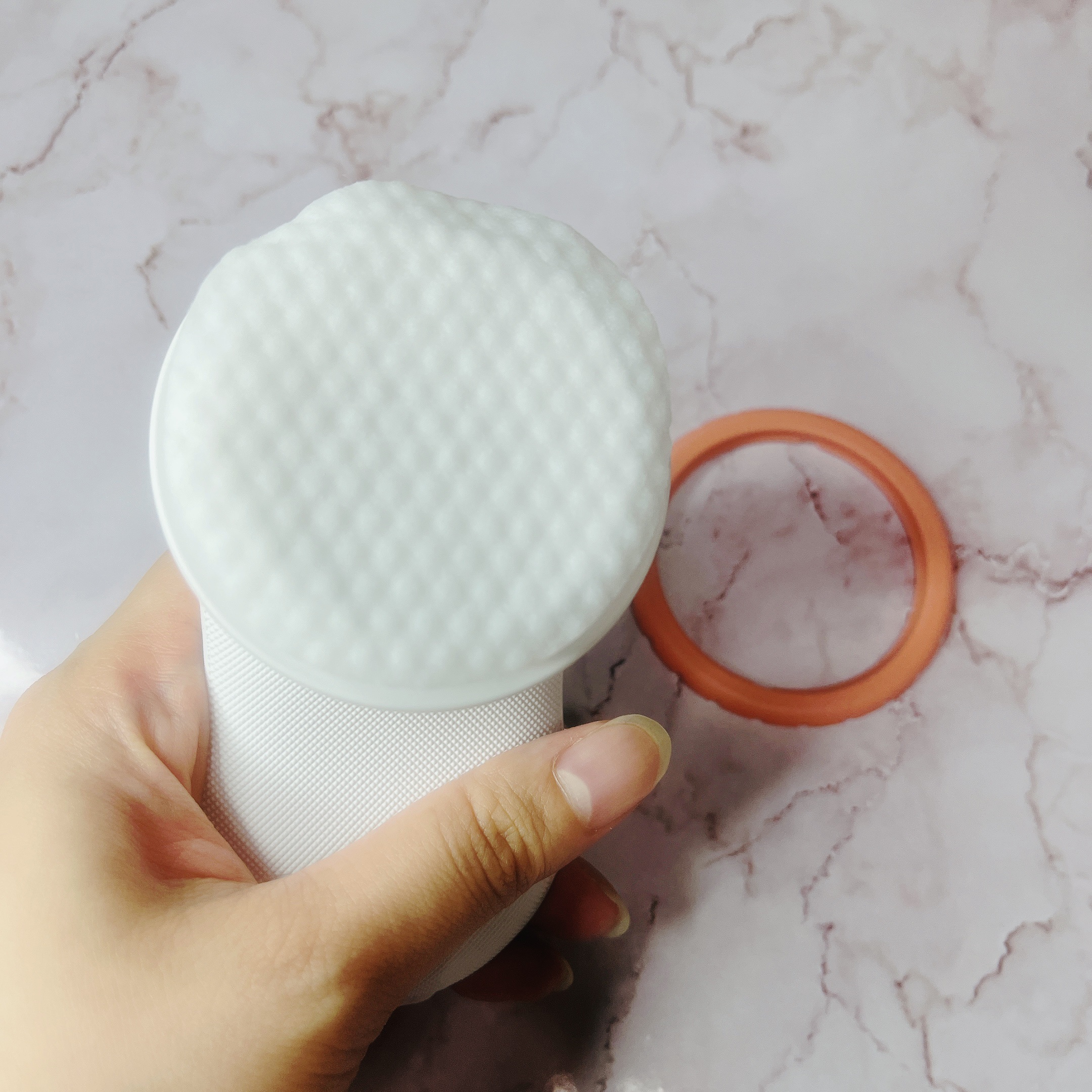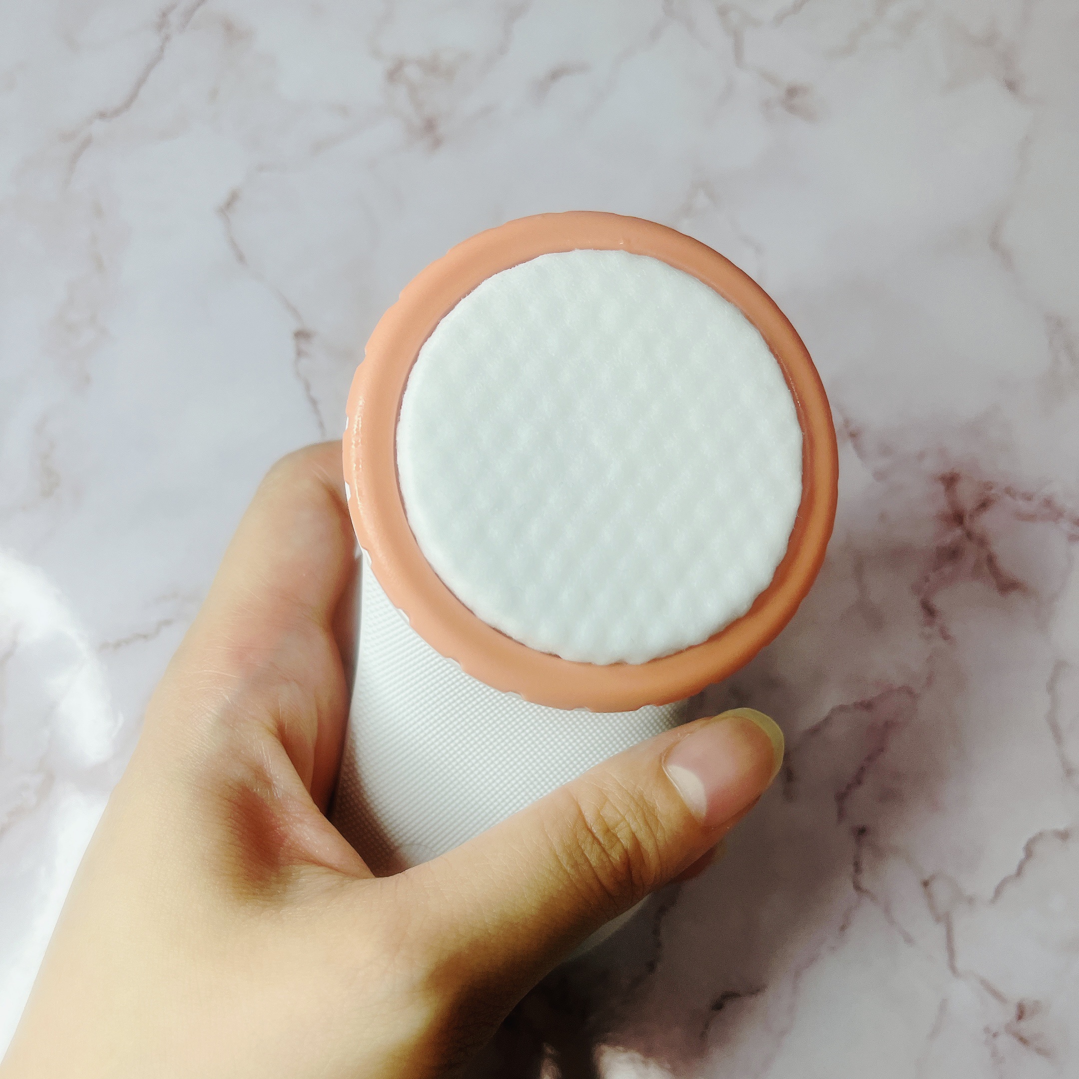 こちらアンプルパッドを挟んで振動のマッサージ機能で効率よくスキンケアをかなえる美顔器。 振動は思っていたよりも強め😂顔があたたまるような感じで効率よくスキンケアができるような気がします😊毎分4500回だそう😳コンパクトなサイズで軽いので手軽に使えるかと思います✨ 小鼻などの細かいところはなかなか小回りはきかないかなぁとは思うのと、付属品に充電器はついていないので手持ちのUSB端子を準備しないといけない点は注意⚠です😀 表裏で素材の違うアンプルパッド。片面は絹糸を使用した独自の生地、もう片方はエンボス加工と使い分けができます。 こちら絹糸面でクレンジングとなるのですが、この面をそのまま使うと結構痛いです😂敏感肌の方は注意かな。美顔器にセットして振動があれば刺激もそんな感じないのでセット利用がおすすめ。 続いてエンボス面でビタミン+ペプチド+アミノ酸といったスキンケアを、という感じです😊パッド自体は液がひたひたなので使っていて気持ちがいいです😊