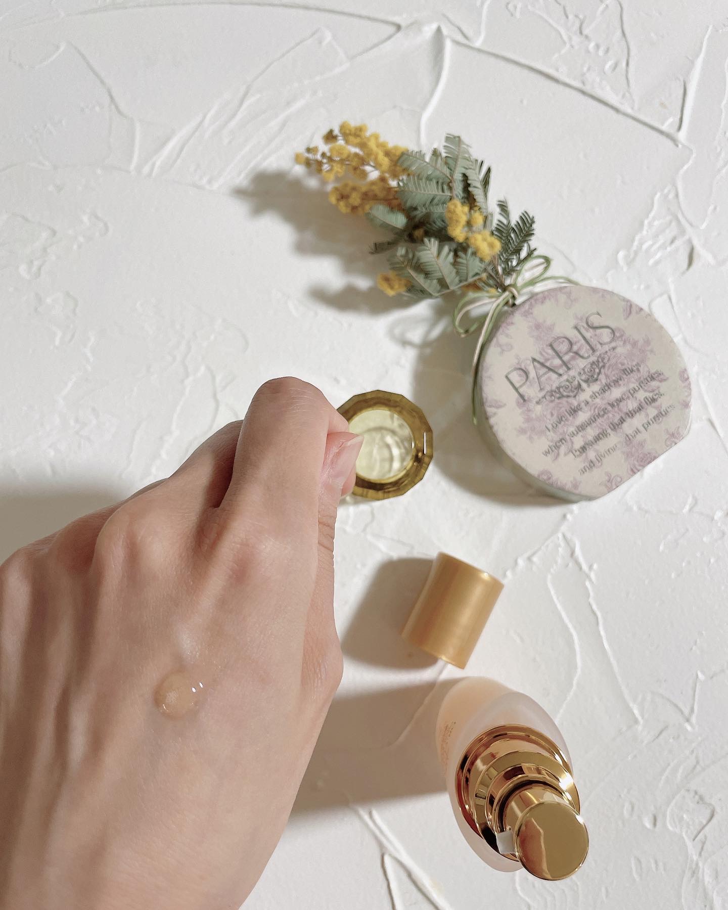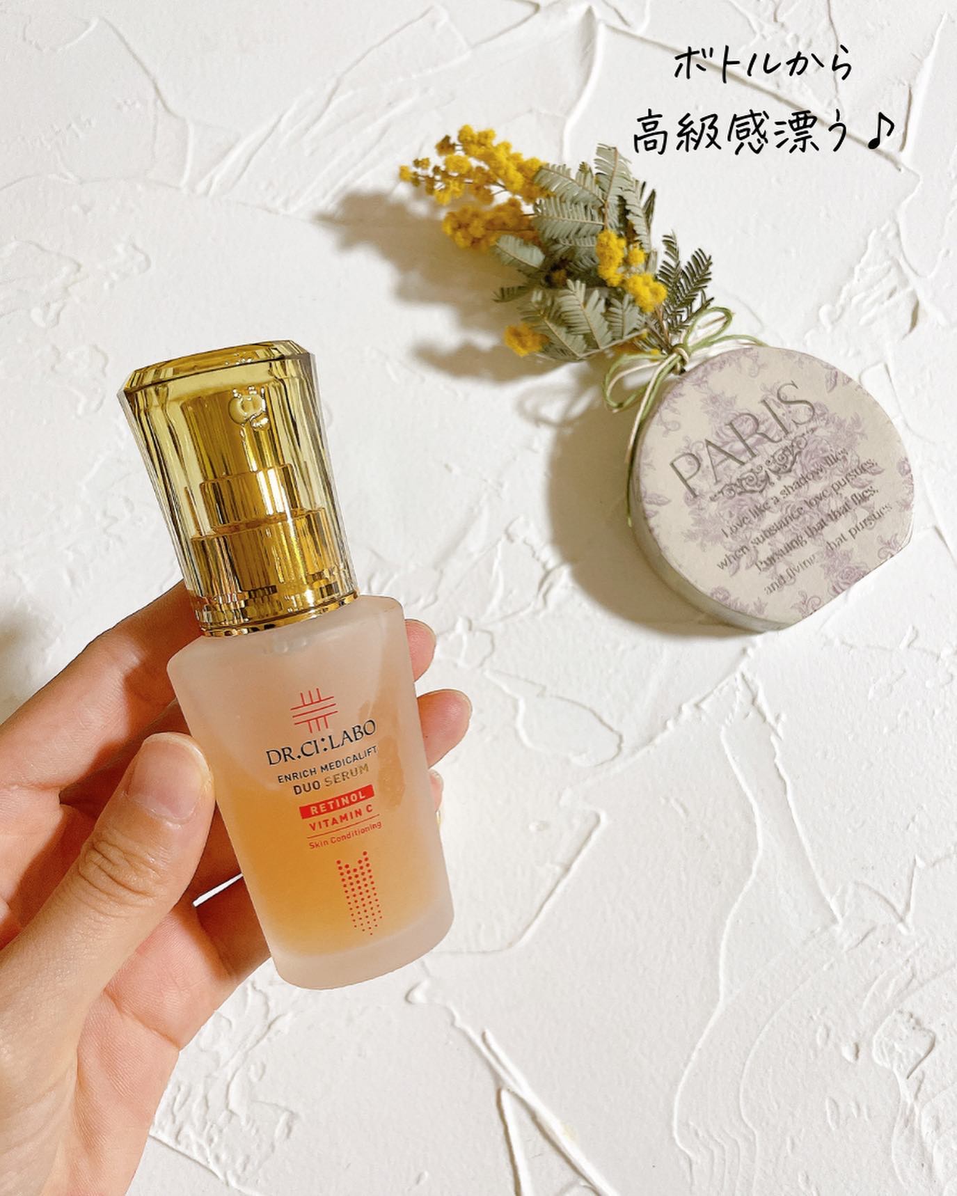 スポイトから出した瞬間は糸を引くほど とろ ~りした一滴だけど、スーッとお肌に馴染む😳 キャップを回すと 一回分の使用量が自動で吸い上がる容器になってて、 めちゃくちゃ便利だったー!! カサカサとしたお肌をなめらかに包んでくれ、 まるでうるおいの膜で守られるような感覚✨