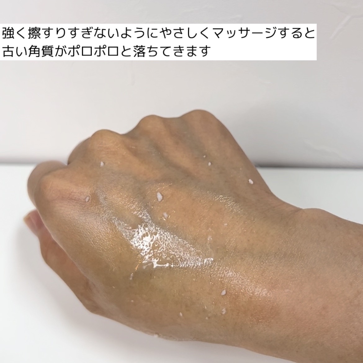 週に1・2回で濡れた手のまま使用できる 低刺激ピーリング 優しくクルクルするだけでポロポロとでてきます その後ぬるま湯で優しく洗い流すだけでお肌にツルツル 顔だけでなく首やデコルテなどにも使えて 一度でツルスベ肌に