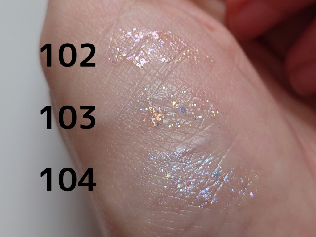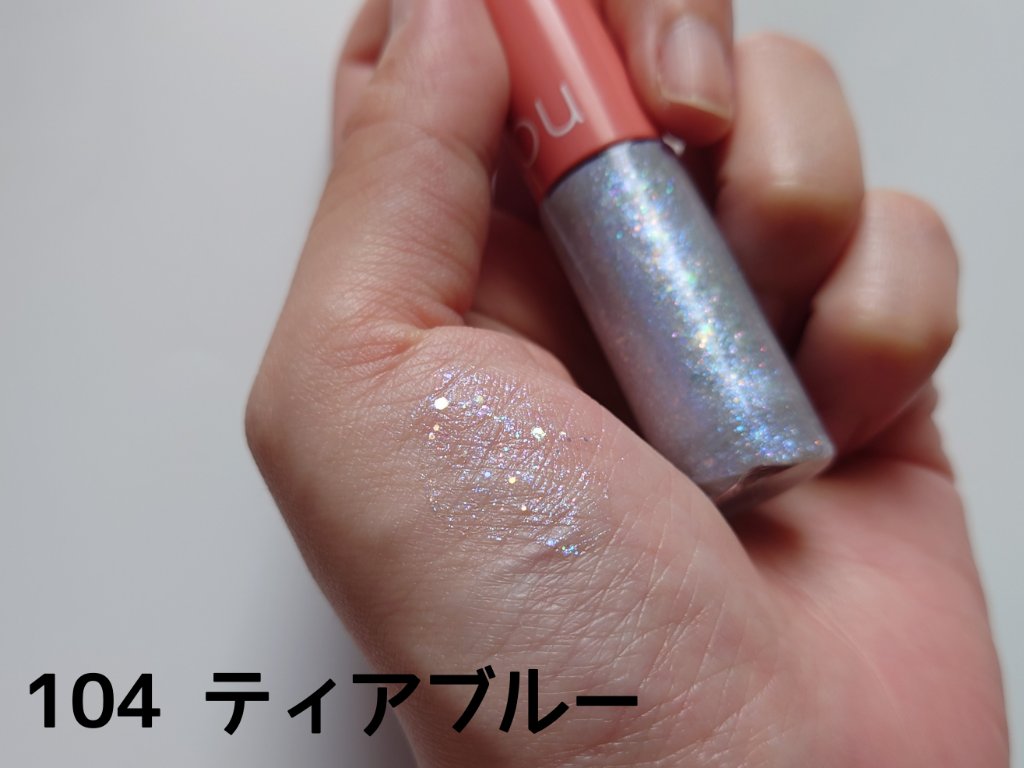 大きめなラメや細かなラメ、様々なサイズのラメが入っていて ひと塗りするとすごくキラキラします✨ ティッシュオフすると結構取れてしまうのとポロポロとその辺にラメが散らばっていました🙈 110円でお買い求めしやすいのとキラキラ輝いて可愛いので違うカラーも気になります♪