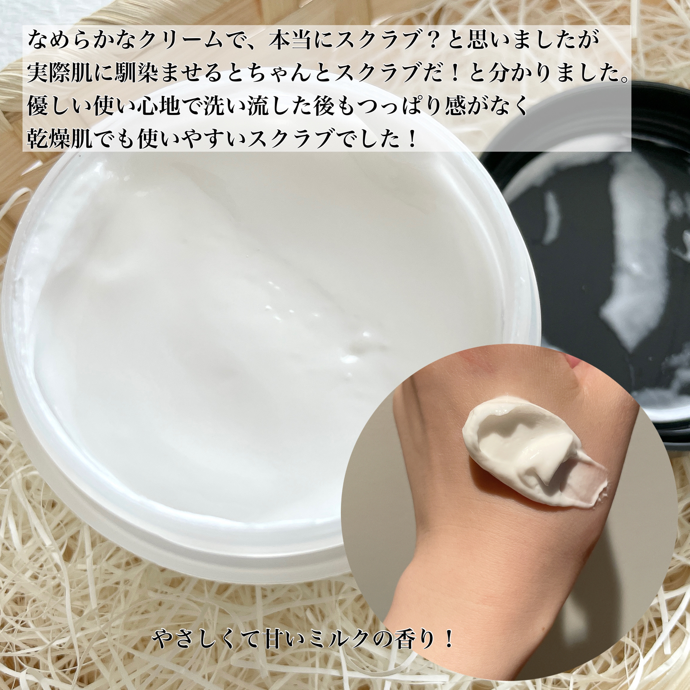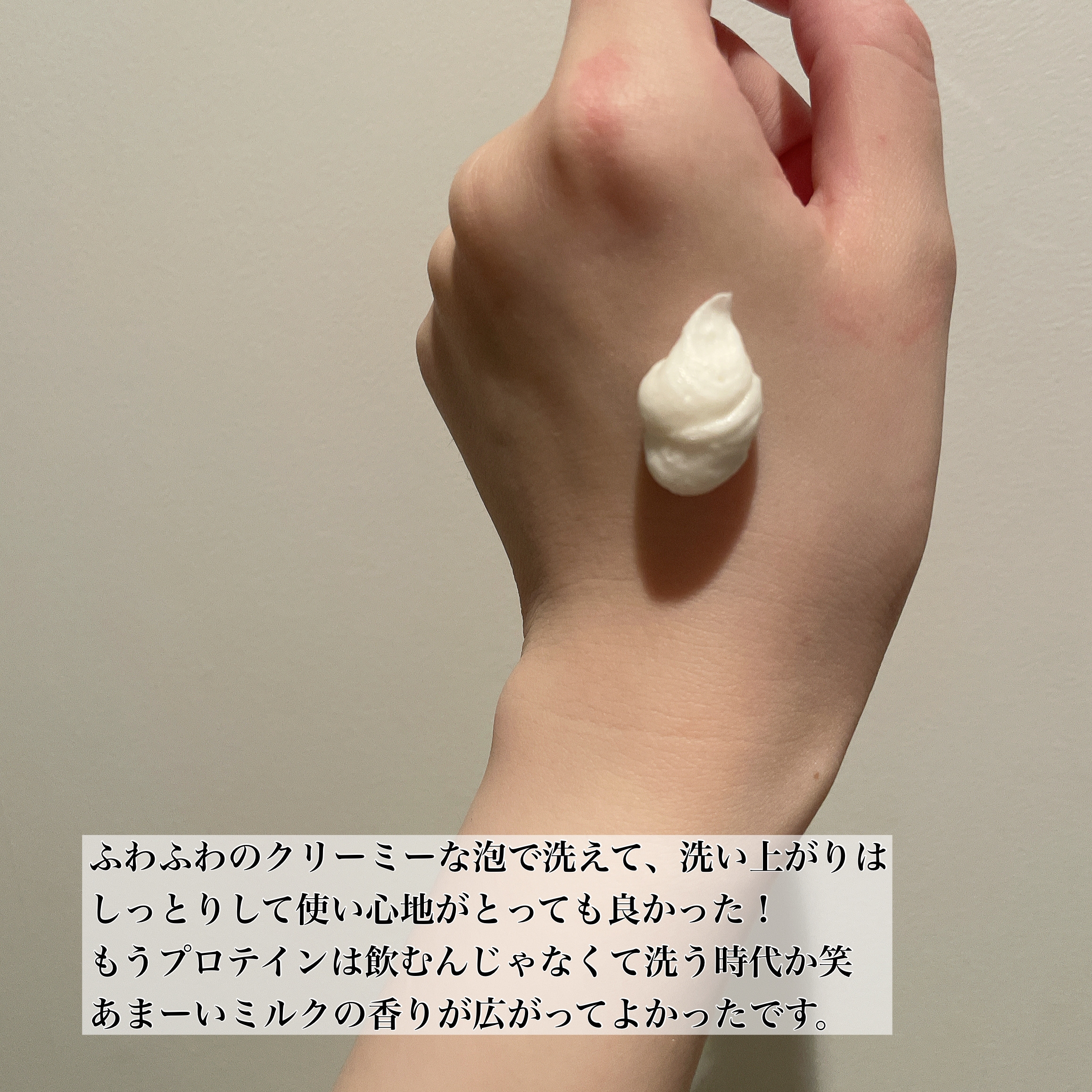 ミルクプロテイン配合でうるすべ肌に アミノ酸系洗浄成分×高級アルコ-ル系洗浄成分 洗顔料はバターみたいなむちむち濃厚系。香りもバターっぽい気がしました! ミルクプロテインの洗顔でつるんとなめらか肌に ︎⸝⋆︎