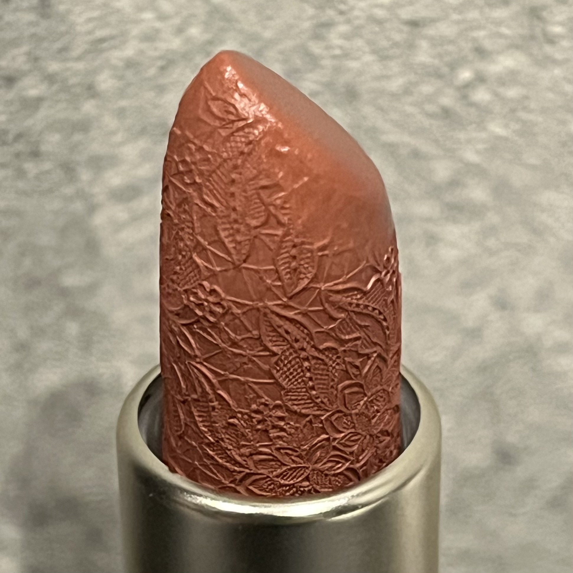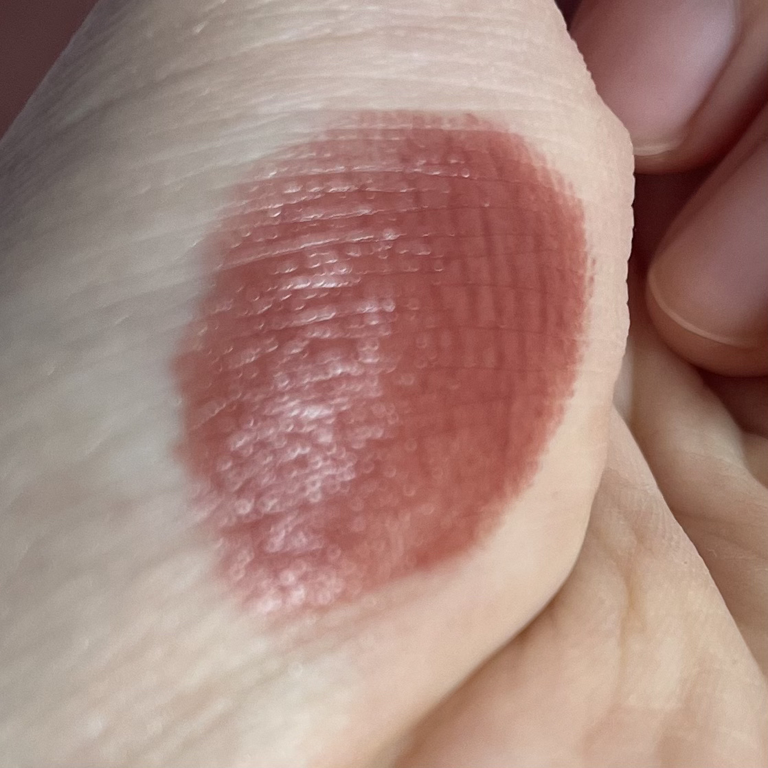 彫刻がとても美しい! 自然な艶感がきれい。 落ち着いた印象のミルクティーベージュ。 シアーで溶け込むような発色で、重くない仕上がりです。 するする塗れて使い心地は抜群! 保湿感もほどよくあり、唇が荒れたりすることは私はありませんでした。