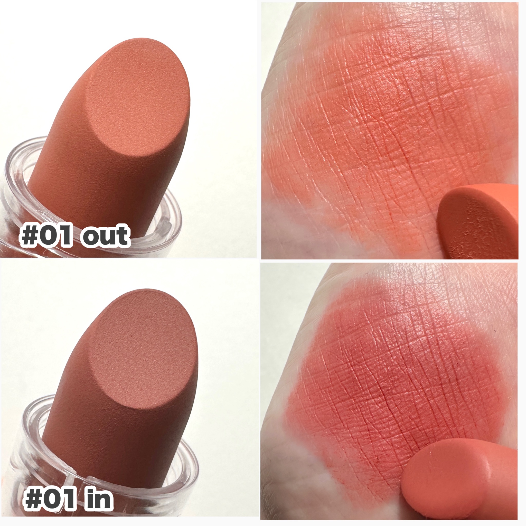 - in+outカラーの組み合わせであなただけのグラデーションカラーを実現。セミマットな質感でふわっとやわらかい印象のリップ。1色で塗っても可愛いカラーバリエーションを揃えました。 2023年6月10日(土)よりPLAZA(一部店舗を除く)にて先行販売開始 01 イン 落ち着いたローズカラー 01 アウト コーラルベージュカラー 02 イン ディープなプラムピンクカラー 02 アウト クールなピンクベージュカラー 03 イン 重くない爽やかなドライローズカラー 03 アウト ヌードトーンのベージュブラウンカラー