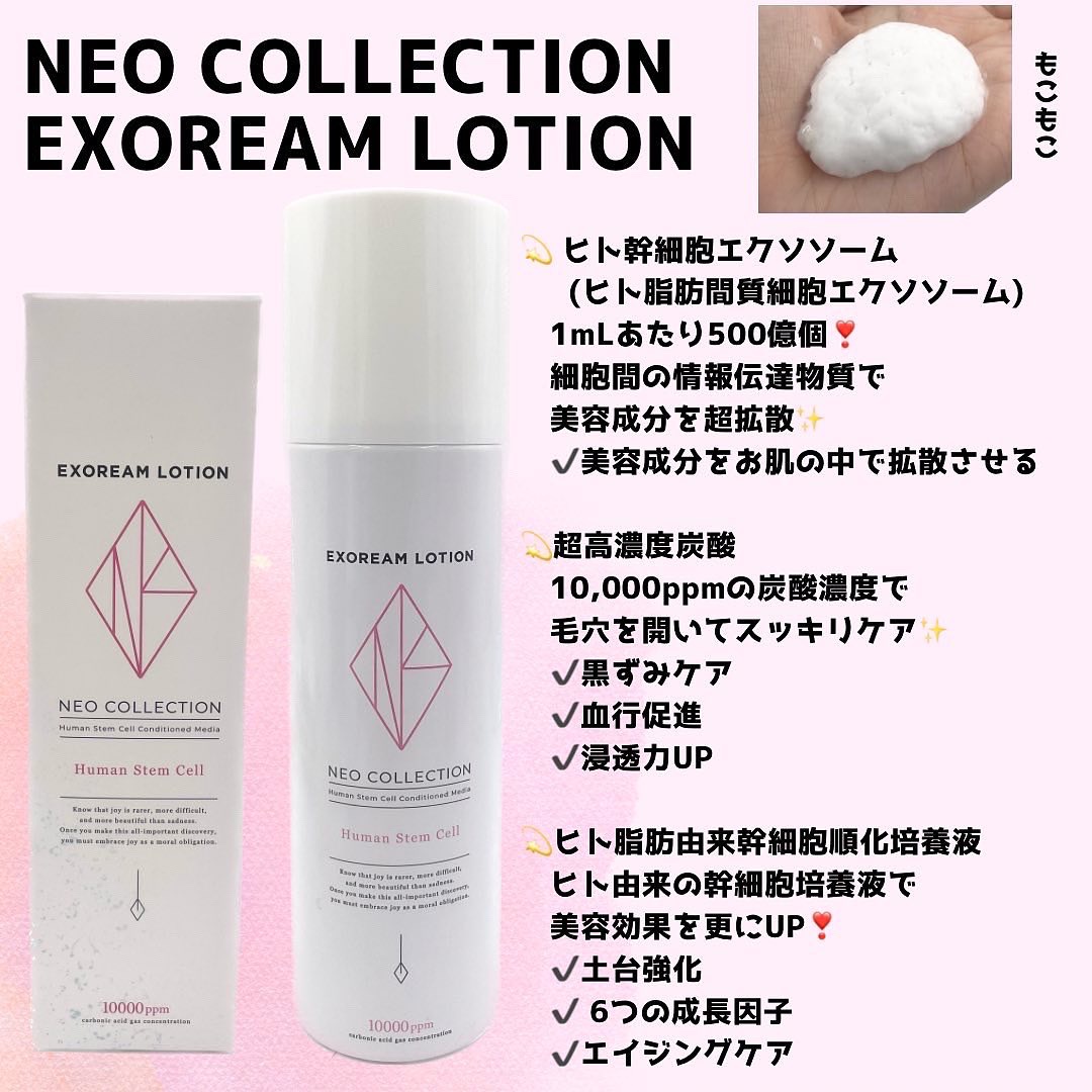 ヒト幹細胞エクソソーム1mLあたり500億個が、美容成分をお肌の中で拡散!出した瞬間、高濃度炭酸がエクソリームローションが一気に膨れ上がる様が凄い!!#exoreamlotion#美炭酸#秒速の浸透力で毛穴0肌@neocollection_o...