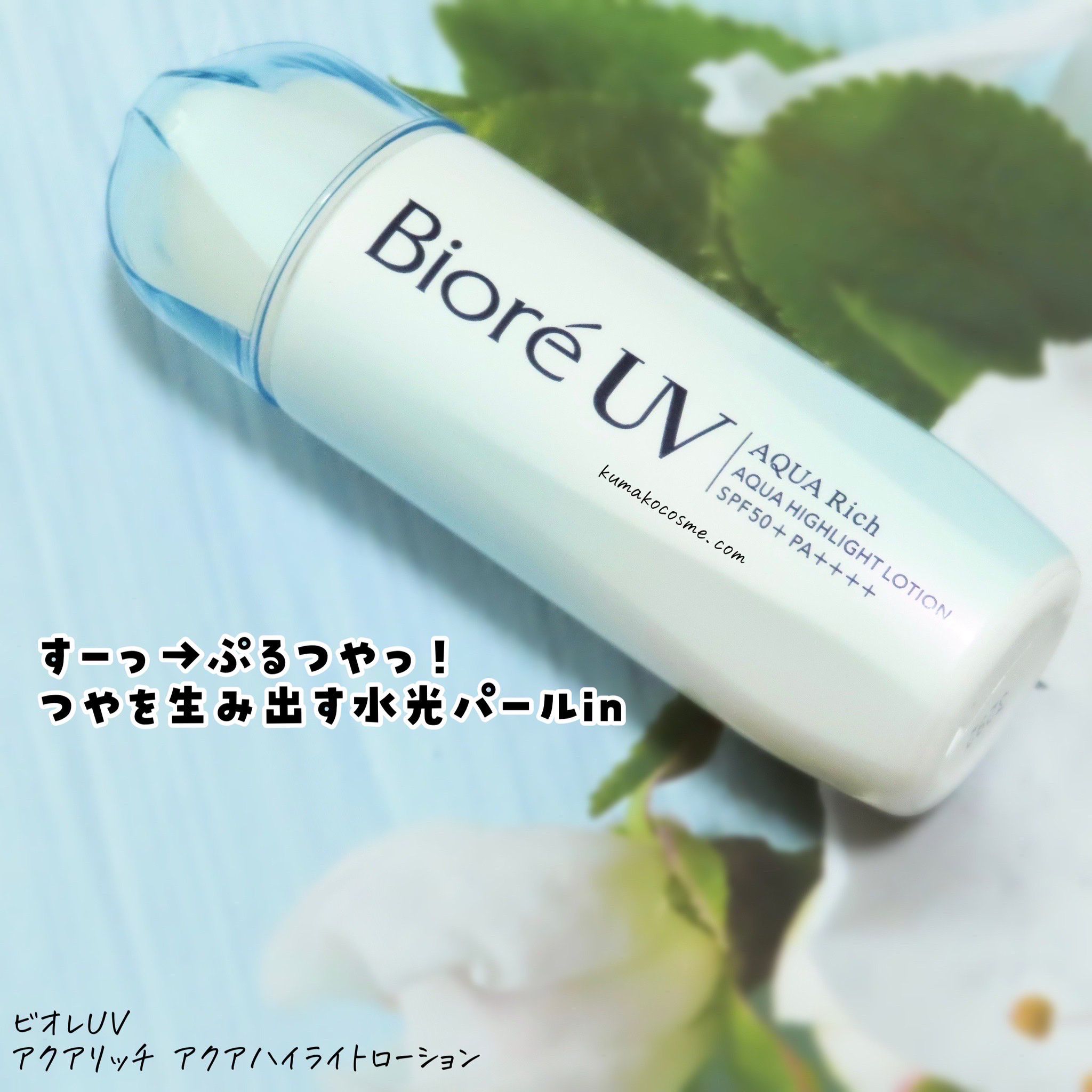 .ビオレUVアクアリッチアクアハイライトローション🌸#水層ハイライトuv身体用に購入🙌シャバシャバ系の日焼け止め。ジェルタイプに慣れてた私としてはやや使いづらい笑でも微粒のパールがすごくて、ほんとにキラキラつや感がアップ。頰、鼻筋やひたいに使...