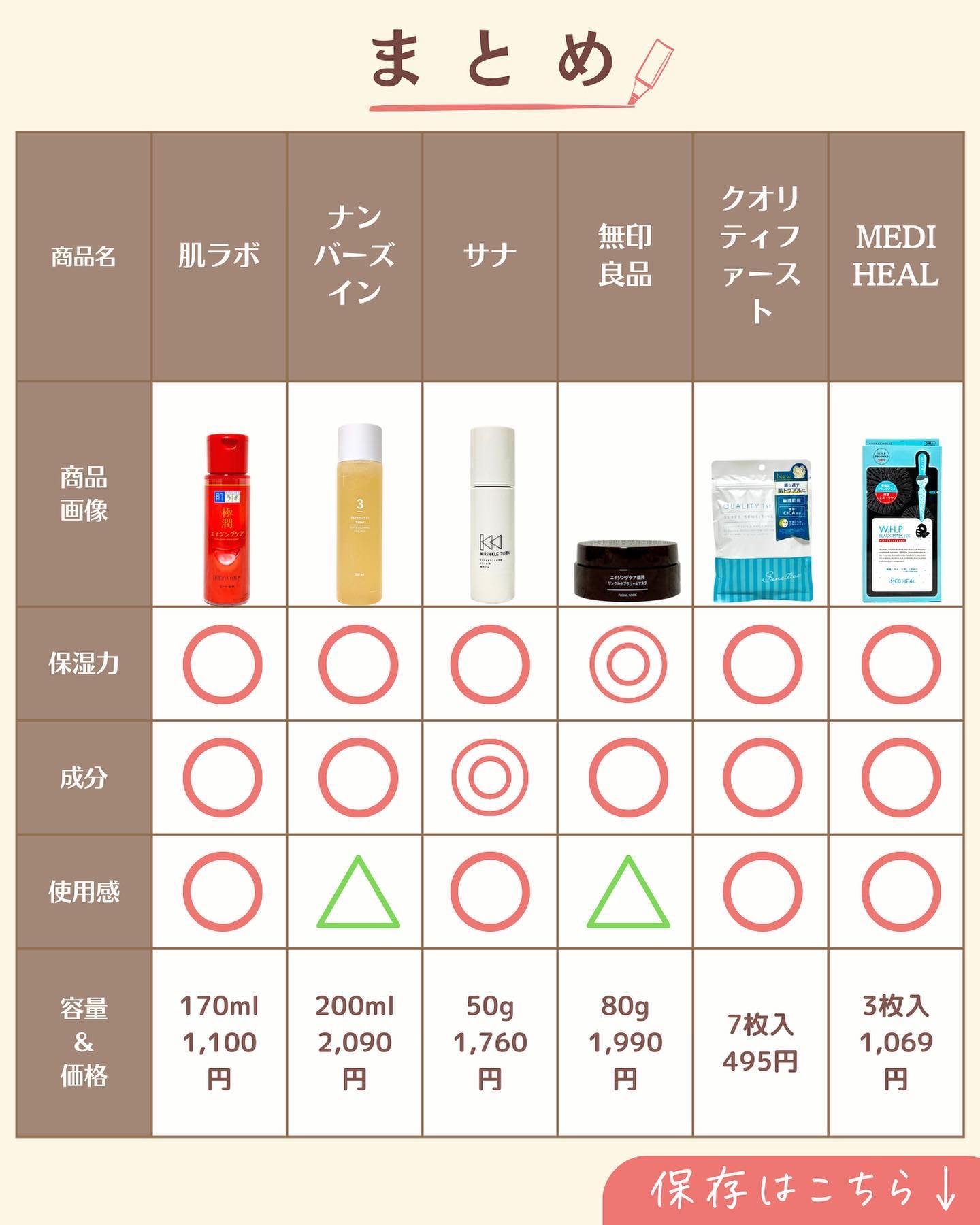 腕に塗布してから30分経過した肌水分量の平均増加率は+87%と優秀すぎる保湿力 サラッとした仕上がり DPG配合 美白有効成分のホワイトトラネキサム酸や、追加された肌荒れ防止有効成分のアラントインが配合 ぬるぬる感は強め 少ししっとりした仕上がりでしっとりタイプの乳液を塗ったような保湿力 有効成分のナイアシンアミドが配合 うるおい成分として3種類のヒアルロン酸が配合