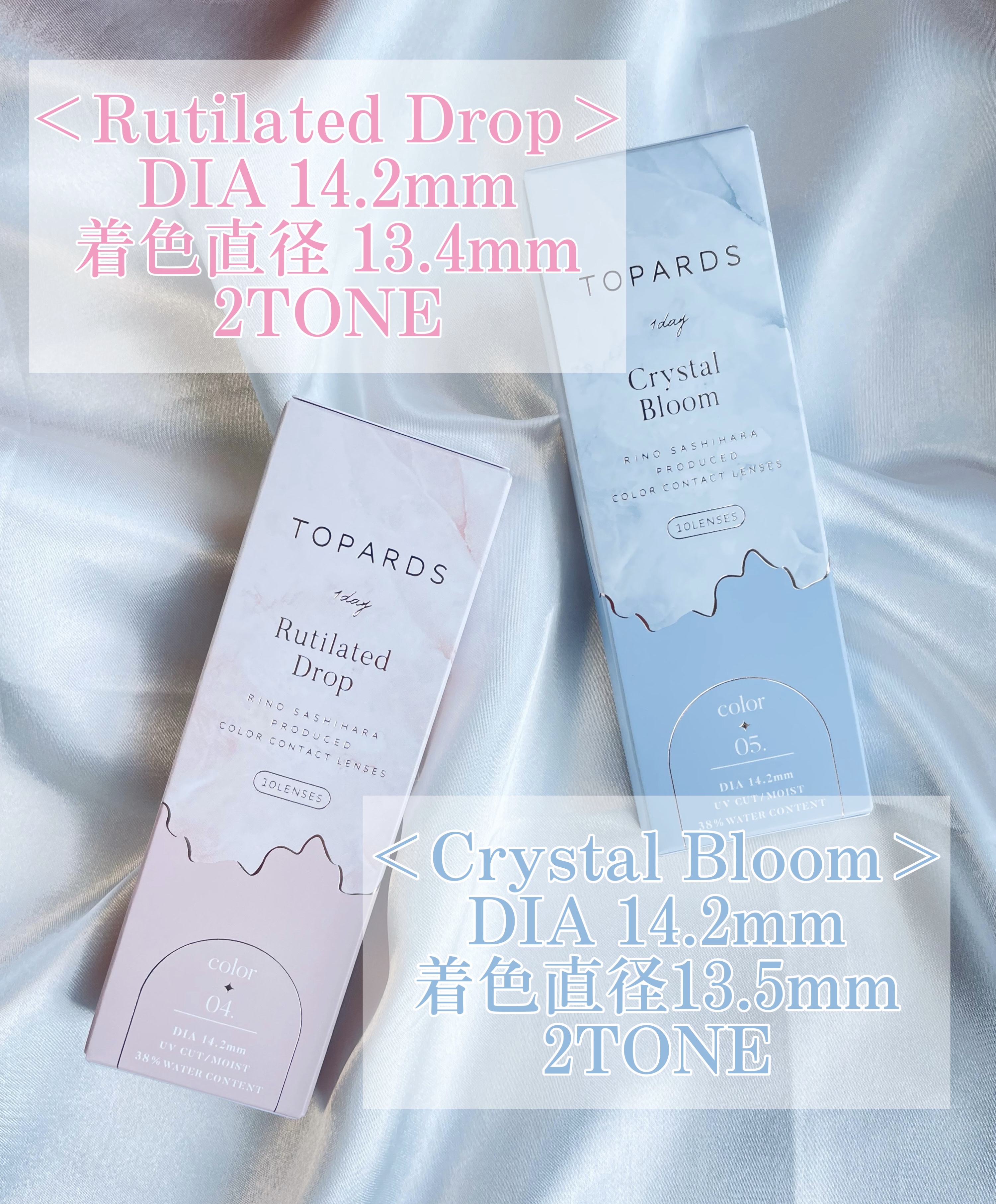 \リピ買いカラコン👀/⠀⠀⠀⠀TOPARDSの1dayカラコンをリピート購入したよ🛒✨⠀今回はクリスタルブルームとルチルドロップの2種類🌸⠀⠀⠀🩶クリスタルブルーム:透明感があってナチュラルに盛れる感じが好き✨⠀🤍ルチルドロップ:ふちなしで、...