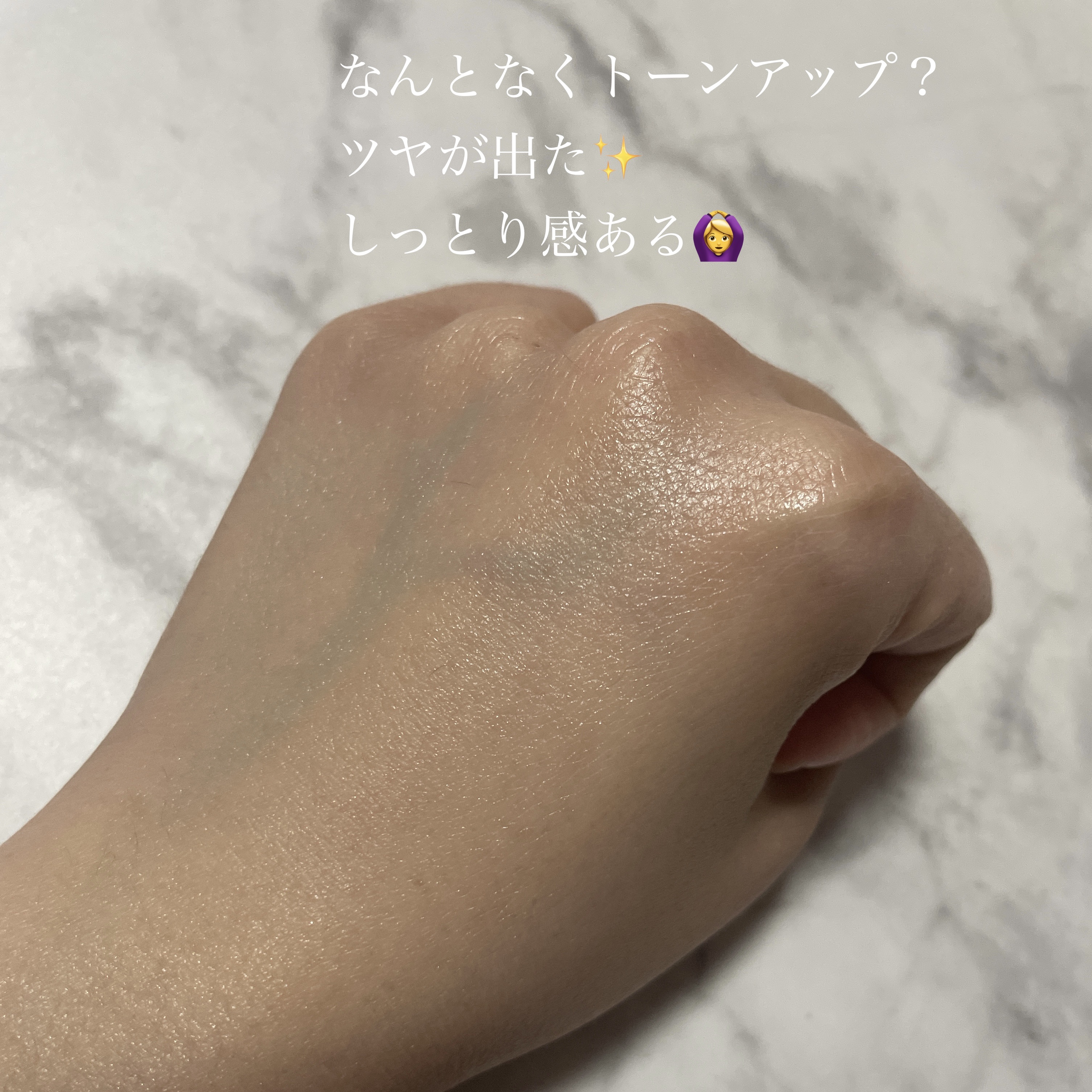 espoirのウォータースプラッシュシリーズでは他にもスタンダードなツヤ肌補正のピンクパッケージのピンク系下地、グリーンパッケージの緑茶成分配合のさっぱり系グリーン系下地とがありますがこちらの商品は肌に優しいティーツリーなどのシカ成分配合のピンク系トーンアップ下地になります。 ウォータースプラッシュクリームシリーズは日焼け止めとしても効果の高い、SPF50+ PA++++であり、こちらの商品も日焼け止め特有のキシキシ感はまったくなく水っぽいテクスチャで少量でかなり伸びが良く疲れた肌に塗っても重くなく、自然なトーンアップとツヤが出てきます😢💓 上からクッションファンデを重ねると程よくツヤが出て、乾燥肌で年中夜更かししてるわたしとしてはカサカサせず、厚塗り感もないのが気に入りました。