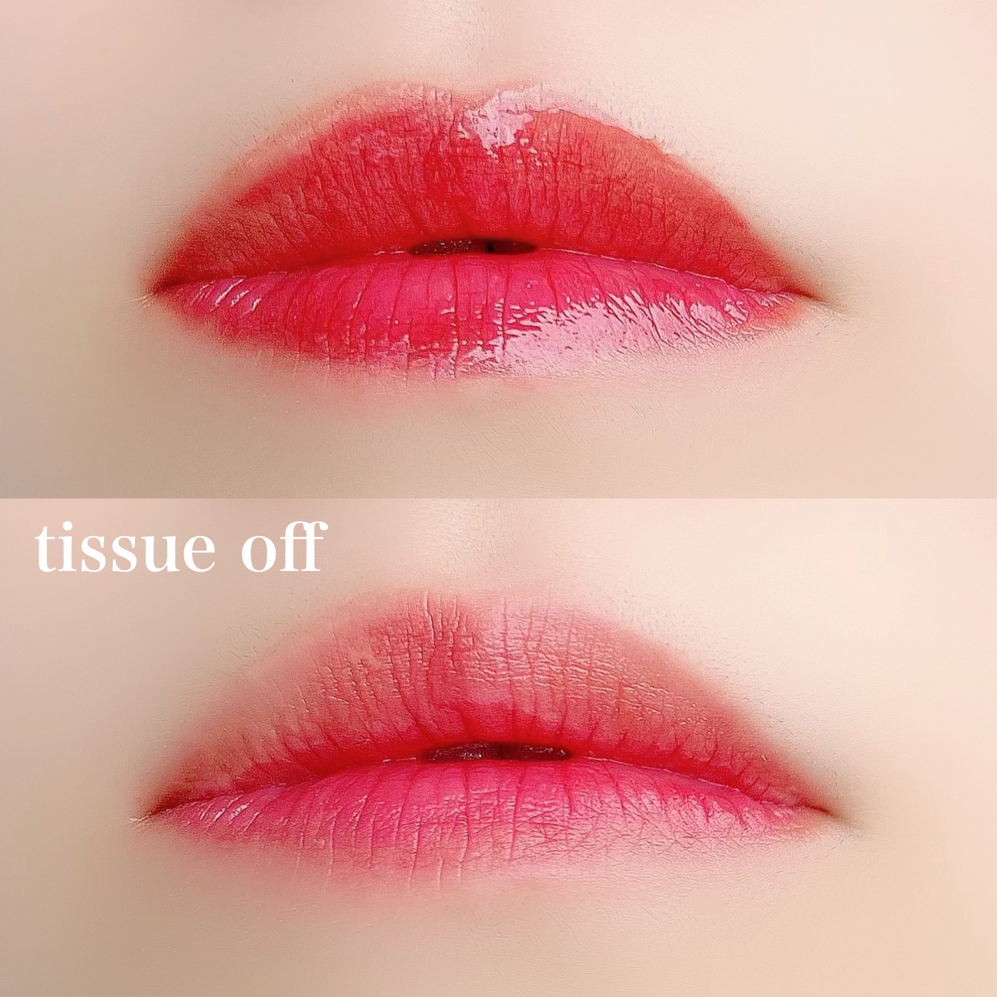 - 透明に輝くウォーターカバーを唇に乗せる ①カラーと光沢層が分離されているので透明感アップ #水膜ティント ②ウォーターティント並みの #色づき ③ベタつき感ゼロ、潤いだけを残す #ちゅるんとリップティント