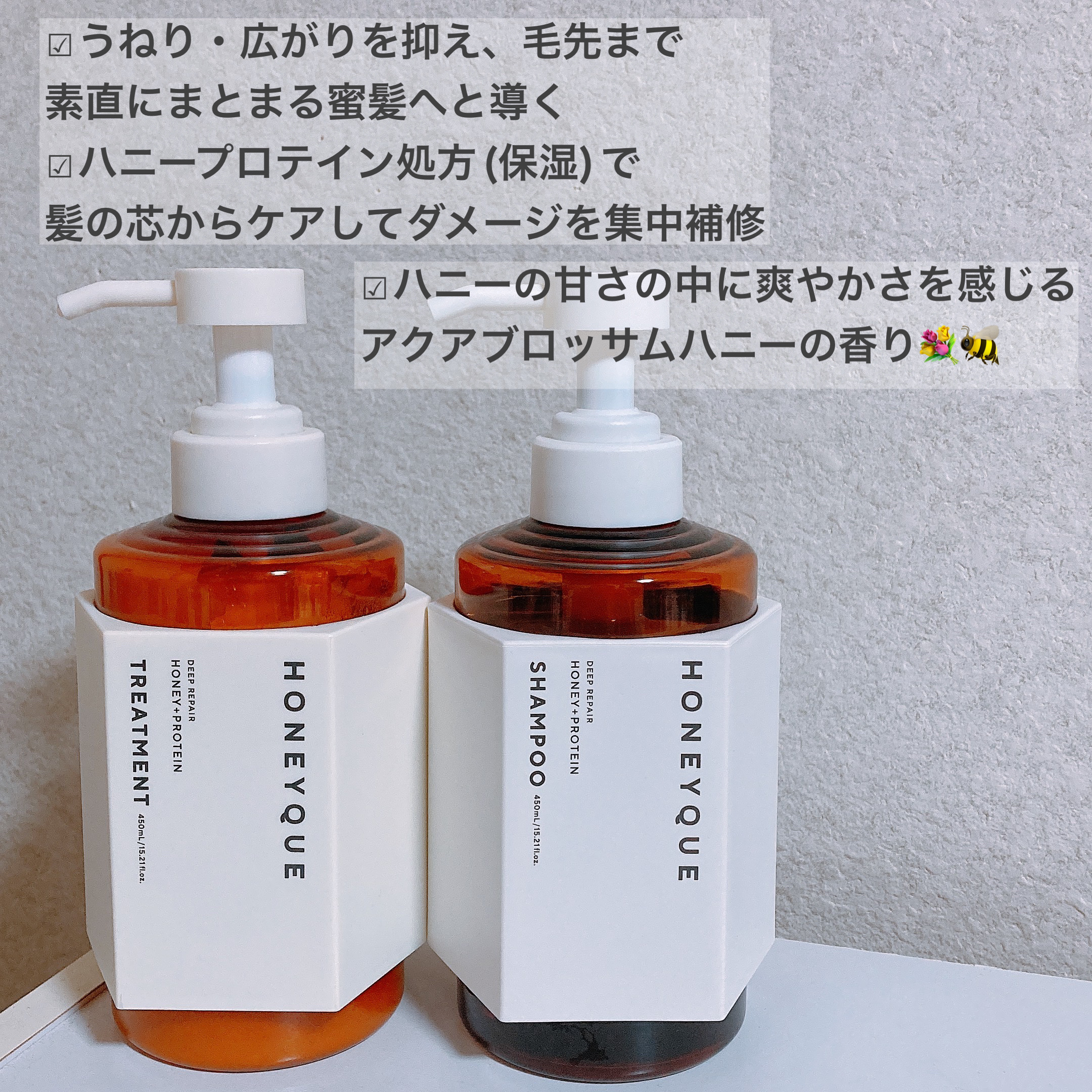 【使った商品】ハニークディープリペアシャンプーモイスト/ヘアトリートメントモイスト【商品の特徴】ハニープロテイン処方のシャンプー&トリートメント【使用感】潤いが感じられるまとまり【良いところ】とろっとしていて洗い心地が良い【イマイチなところ】...