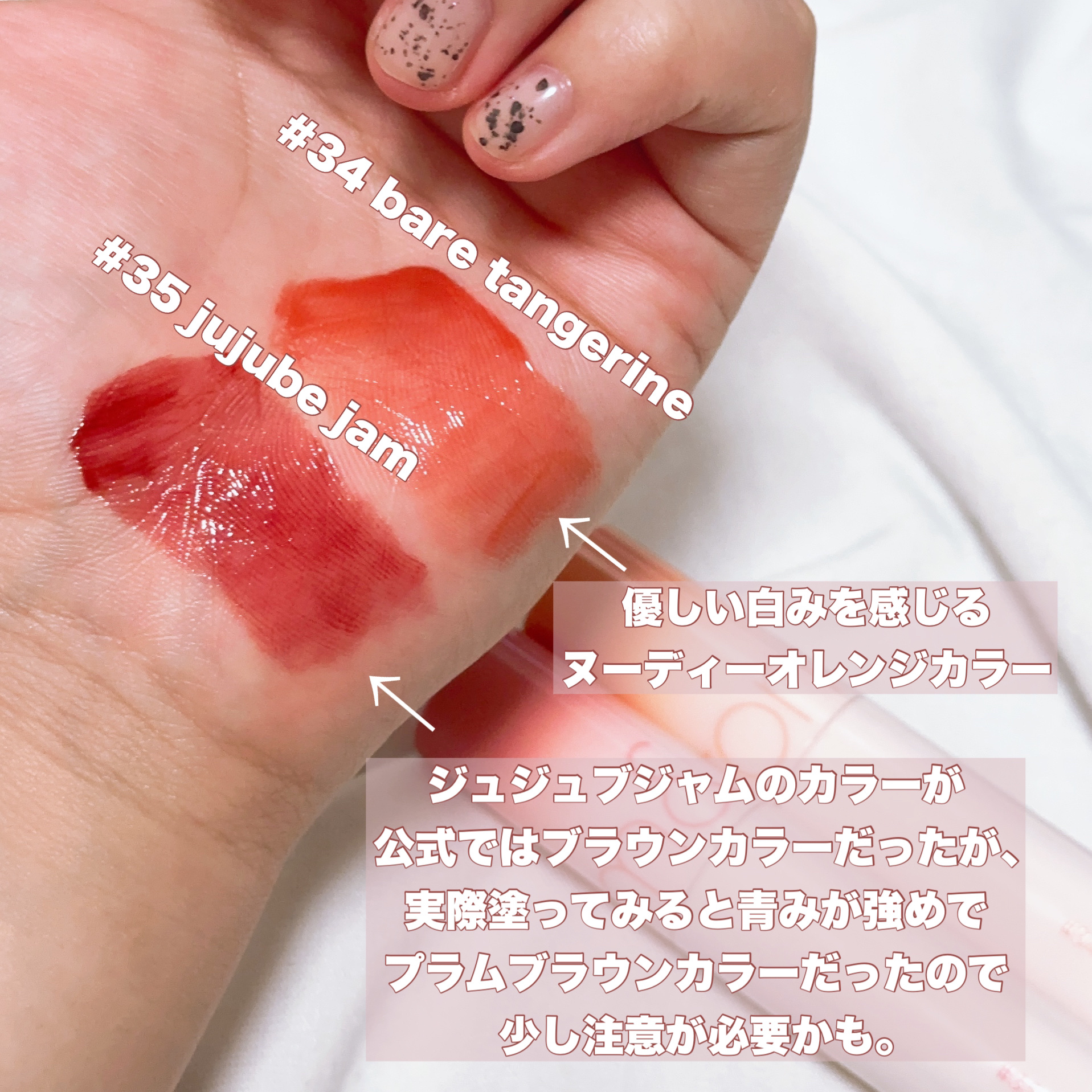 \🌷4月1日に発売された新色!!🌷/rom&ndのJUICYLASTINGTINT4色レビュー!今回のJUICYLASTINGTINTはくすみカラーというよりかはヌードカラーという感じでした!パッケージも前のと比べて品名が大きくなったので分か...