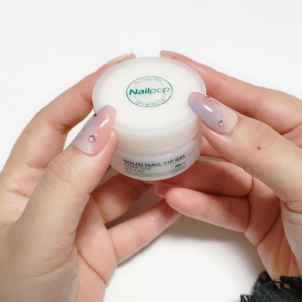 こちらはテクスチャ硬めのトップコートのような質感のジェルで、爪に塗布して硬化して使います。 ネイルチップを貼るのにも使えて、しかもかなりしっかり接着してくれるのでかなり使えます!! これを買ってから、ポロリのストレスがほぼ無くなりました。
