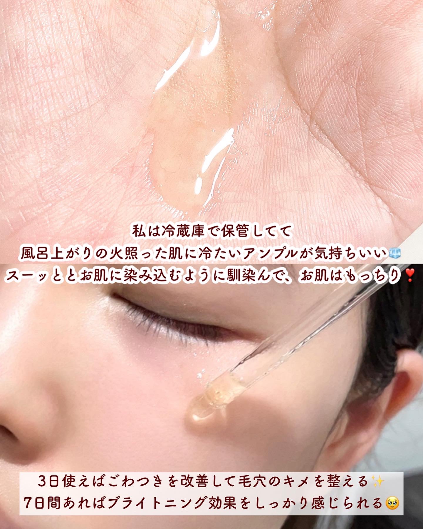 とにかく美肌になれる😳✨ 開けた瞬間プシュって鳴る😳(高濃度ビタミンCが密閉されている証拠💡) 使い始めてから、キメが整いなめらかなめらか肌になった😳 やさしい角質ケア成分PHA(0.1%)配合で、気軽に角質ケアできちゃう🥰 ピュアビタミンが高濃度で(25%)、そこに純度98%のバイオグルタチオンを融合することで、ビタミンの効果を最大限に発揮する事ができるんだって😳