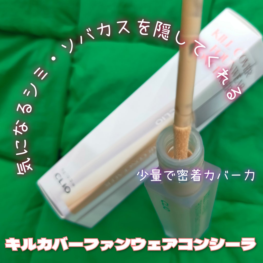 もっと早く見つけたかったと思うくらい好きなコンシーラーに出会えました🫶 CLIO キルカバーファンウェアコンシーラー 02 LINGERIE 薄づきなのに密着力があって綺麗に隠したい場所を隠してくれます🤲 伸ばした後はサラッとしててヨレにくいです! 初めてめっちゃ好きって思えるコンシーラーに出会えて嬉しい😊