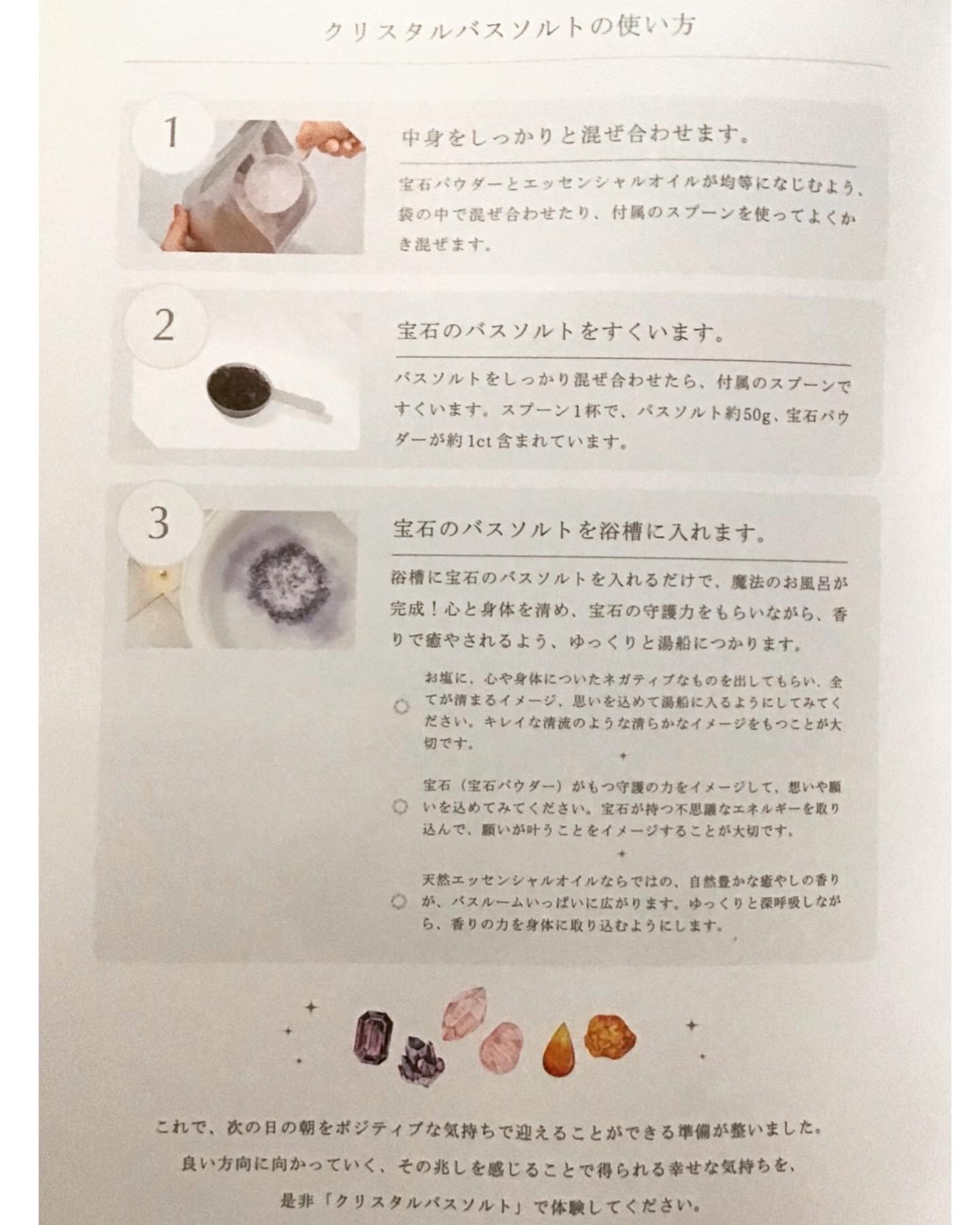 天然宝石パウダーを使ったバスソルト クリスタルバスソルトをいただきました。 私が選んだのは、アンバー。琥珀が好きですし、イランイランの香りが好きだからです。 宝石浴とはクリスタルヒーリングストーンメソッドをバスタイムに活かしたものです。