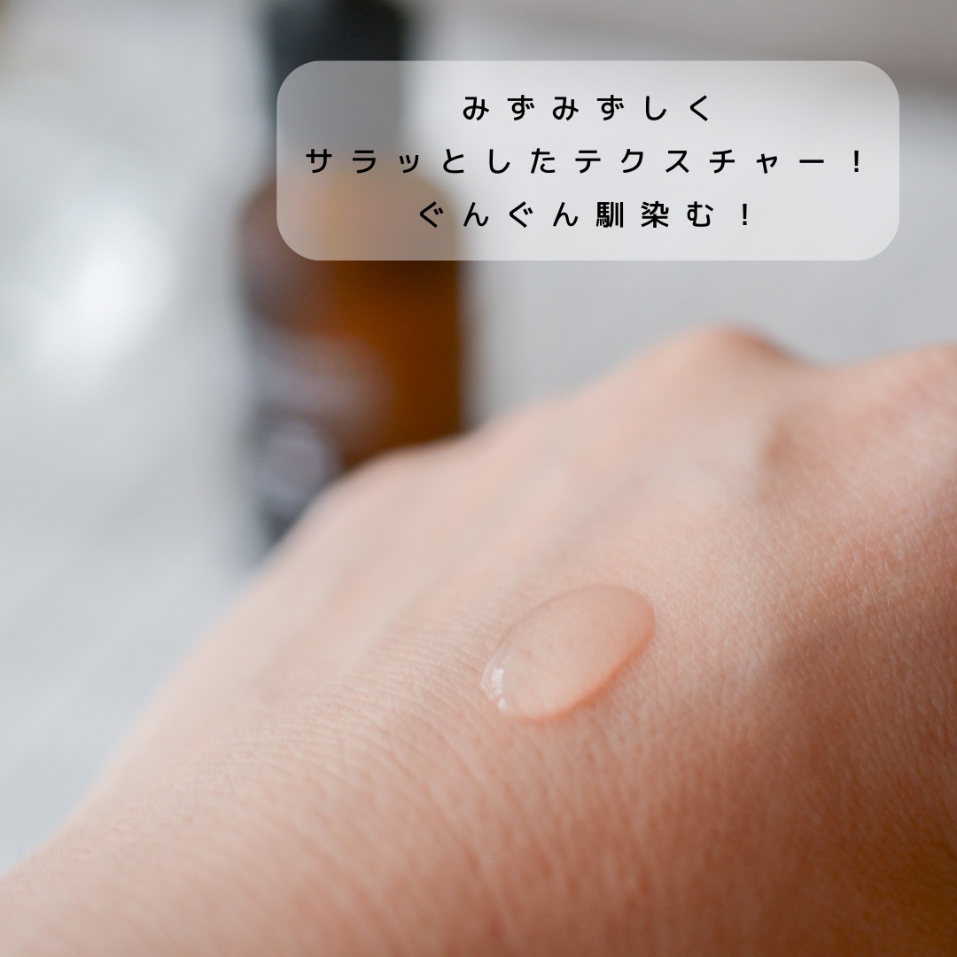 | テクスチャはサラっサラ! まるで水みたいにとろみのないテクスチャで 肌にのせると、スッとなじんでくれます。 | 詳細を見る |
