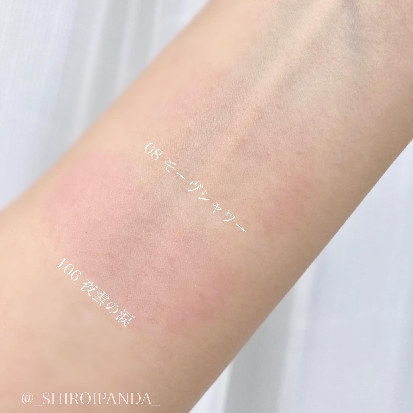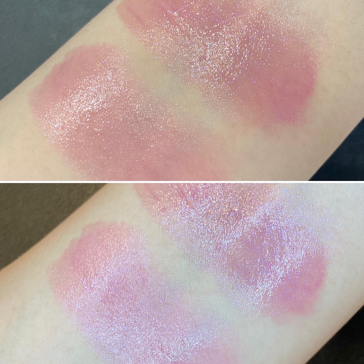 思ったより赤みのあるピンクで血色感があってつけやすくて可愛い🌸思ったより青みは強くなくコーラルっぽさも感じるのでPC関係なくナチュラルに使えそう☺️ モーヴ感強くて顔色悪くなるかな?と思ったけど塗ってみたらマイルドなオレンジブラウンのように発色した🍊ブラウンリップほど濃くないのでブルベさんでも使えるニュアンスブラウン🤎 とにかくちゅるるんとした唇になれるリップ🥹 食事をしたら取れちゃう感じだけど、塗り直しすれば問題なし🙆♀️ とにかくカラーとパケがかわいい🧚