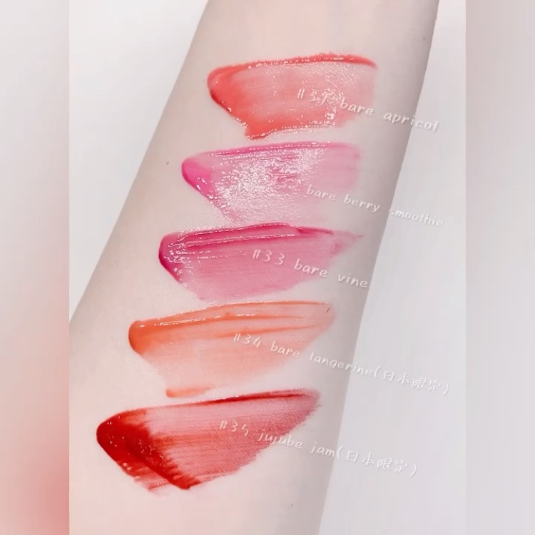 - みずみずしいフルーツがきらめくようなシロップティント ①なめらかで潤いのあるリップを実現 ②果汁のシロップのようなカラー感 ③時間が経つにつれ凸凹を滑らかに密着しボリューム感を演出