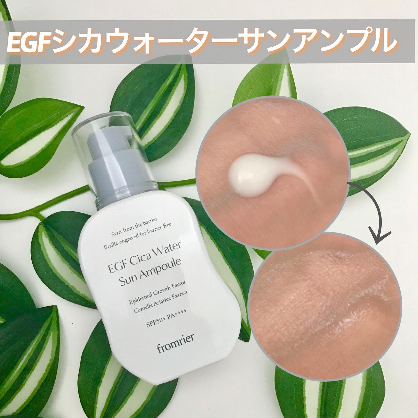 \スキンケアしながらUV対策/【fromrierEGFシカウォーターサンアンプル】☑️SPF50+/PA++++日焼け止め、スキンケア、美容液の機能を兼ね備えたUVケアアイテム✨整肌成分であるツボクサエキス(シカ)配合。無香料・白浮きなし、キ...