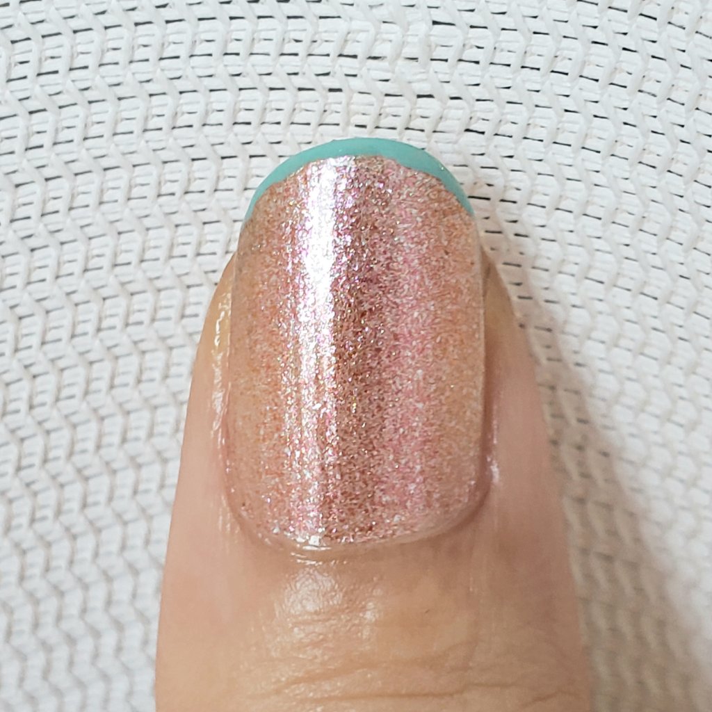 ポイントとしては、ガラスフレンチ部分は一息でやること…かな。 手順でいうと②~④だね。ベースにしたローズミルクティーが乾いたら、フレンチラインをひくところからメタルホロを貼り付けるところまでサッサッサッと💨 下準備として、メタルホロはちょうどいい大きさに切っておくと作業がスムーズ◎ それから、メタルホロを使うときは下にティッシュかキッチンペーパーを敷いておくと片付けもラク◎ 指一本ずつの作業だから、ネイルにかかる時間がかなり長くなるけど、やっぱりガラスフレンチは可愛い🖤