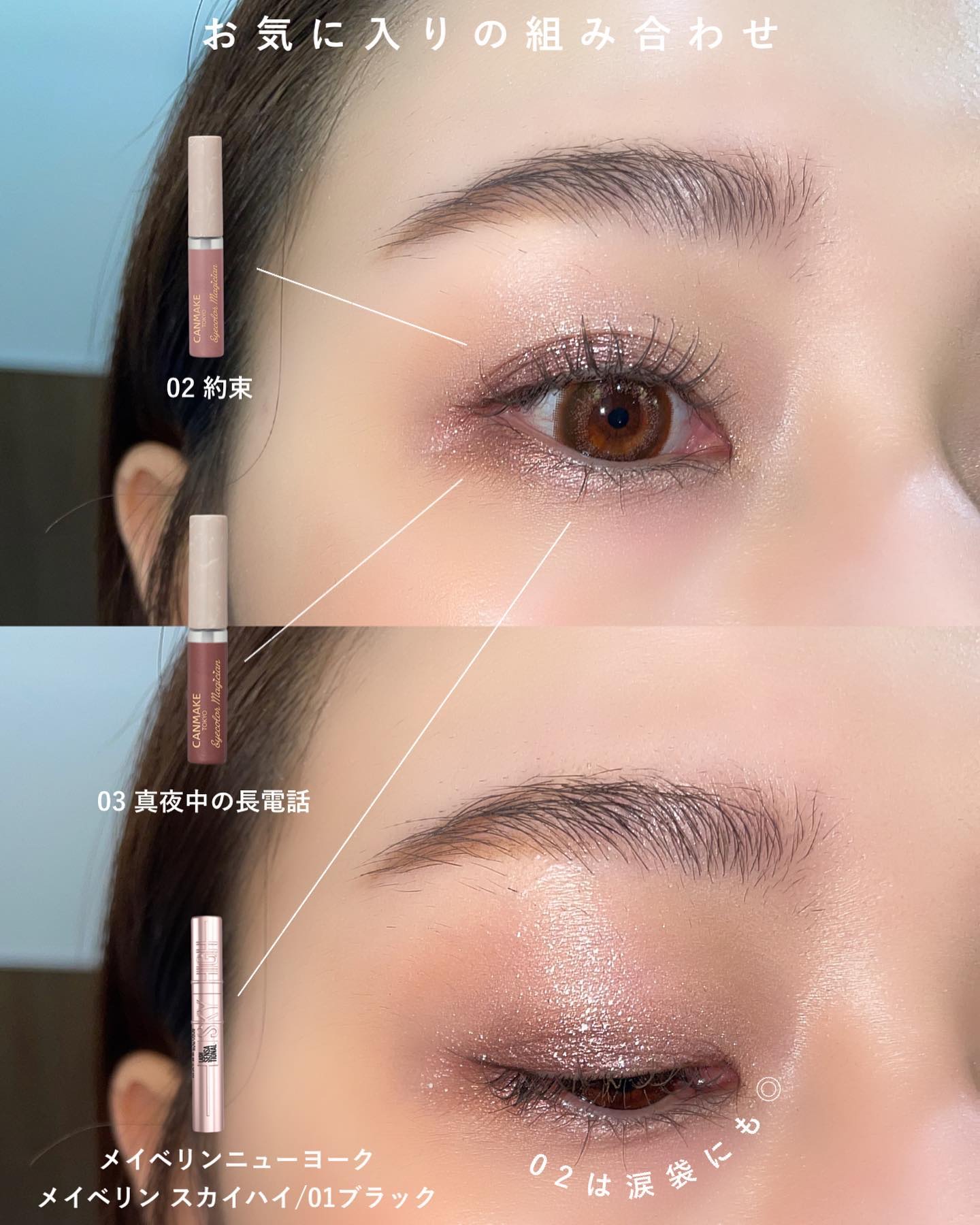 - リッチな輝きが長時間続く サラサラ仕上げのリキッドアイシャドウ 塗り心地はみずみずしくなめらかなのに、伸ばしていくうちにサラサラに変わる 魔法みたいなリキッドアイシャドウ♡ 速乾だからヨレにくく、ふたえのラインにたまりにくい! リキッドアイシャドウならではの輝きが長時間続きます。