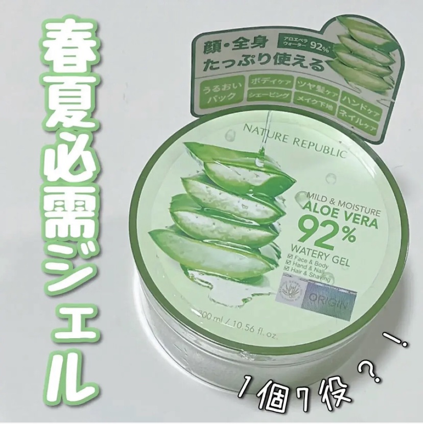 ほんとに何回リピートしたかわからない😱日焼けする私の相棒鎮静スキンケア🔥🌿1つで全身ケア!万能アロエジェル🌿紫外線や乾燥でダメージを受けた肌を、92%配合のアロエベラがたっぷり潤してくれる優秀ジェル✨。顔、体、髪までどこでも使えるから、1つ持...